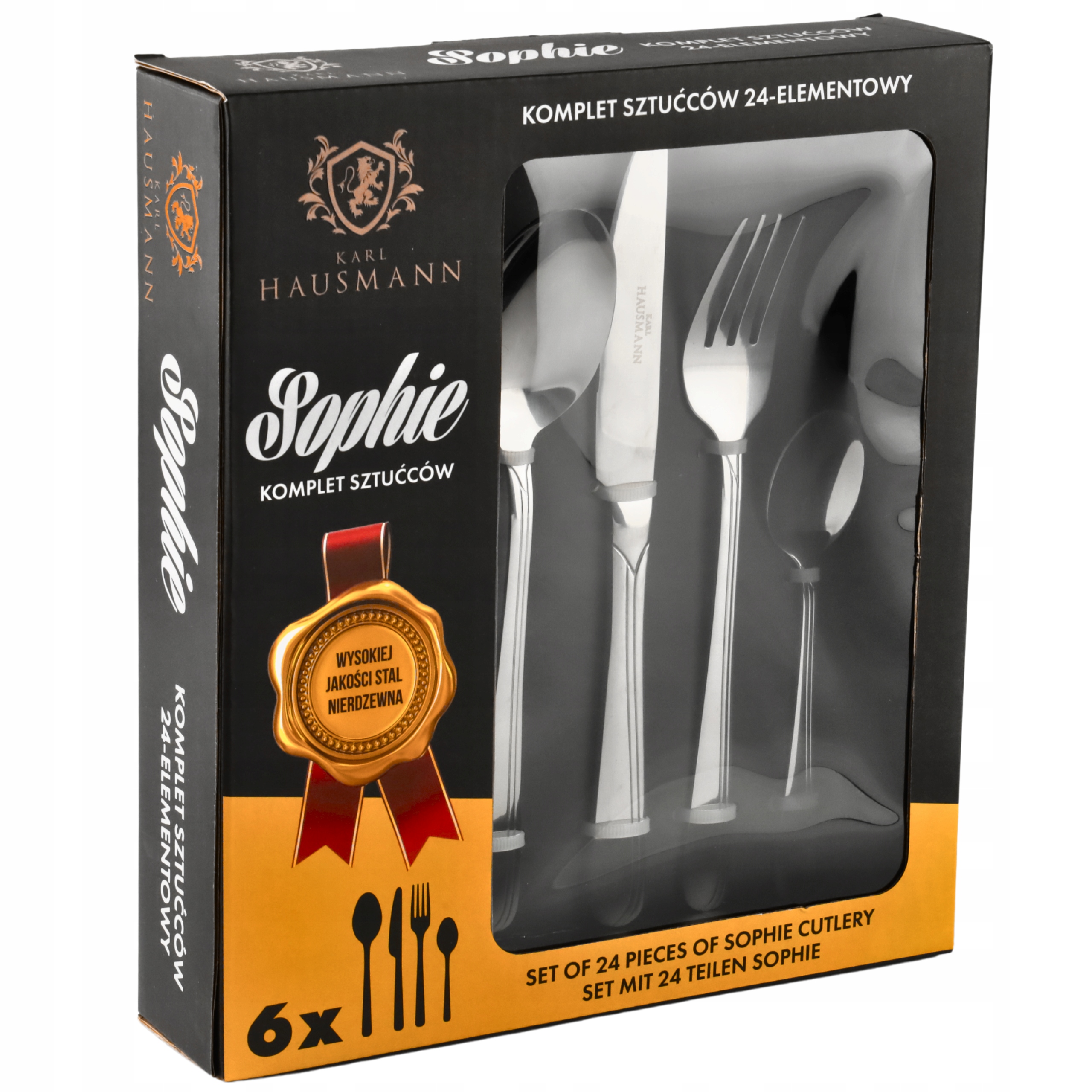 ✔️ 24-częściowy zestaw sztućców SOPHIE to idealny prezent na ślub lub parapetówkę. Polerowane sztućce ze stali nierdzewnej łączą trwałość i styl. Będą mile widzianym dodatkiem do każdego domu. Tworząc każdą z naszych kolekcji, kierujemy się przede wszystkim jakością wzornictwa i wykonania. Komplet zawiera 24 elementy, przez co z łatwością stworzysz swój własny zestaw sztućców - na każdą okazję. Sztućce posiadają gęstsze pokrycie, wykonane w stali nierdzewnej posłużą nam przez wiele lat.