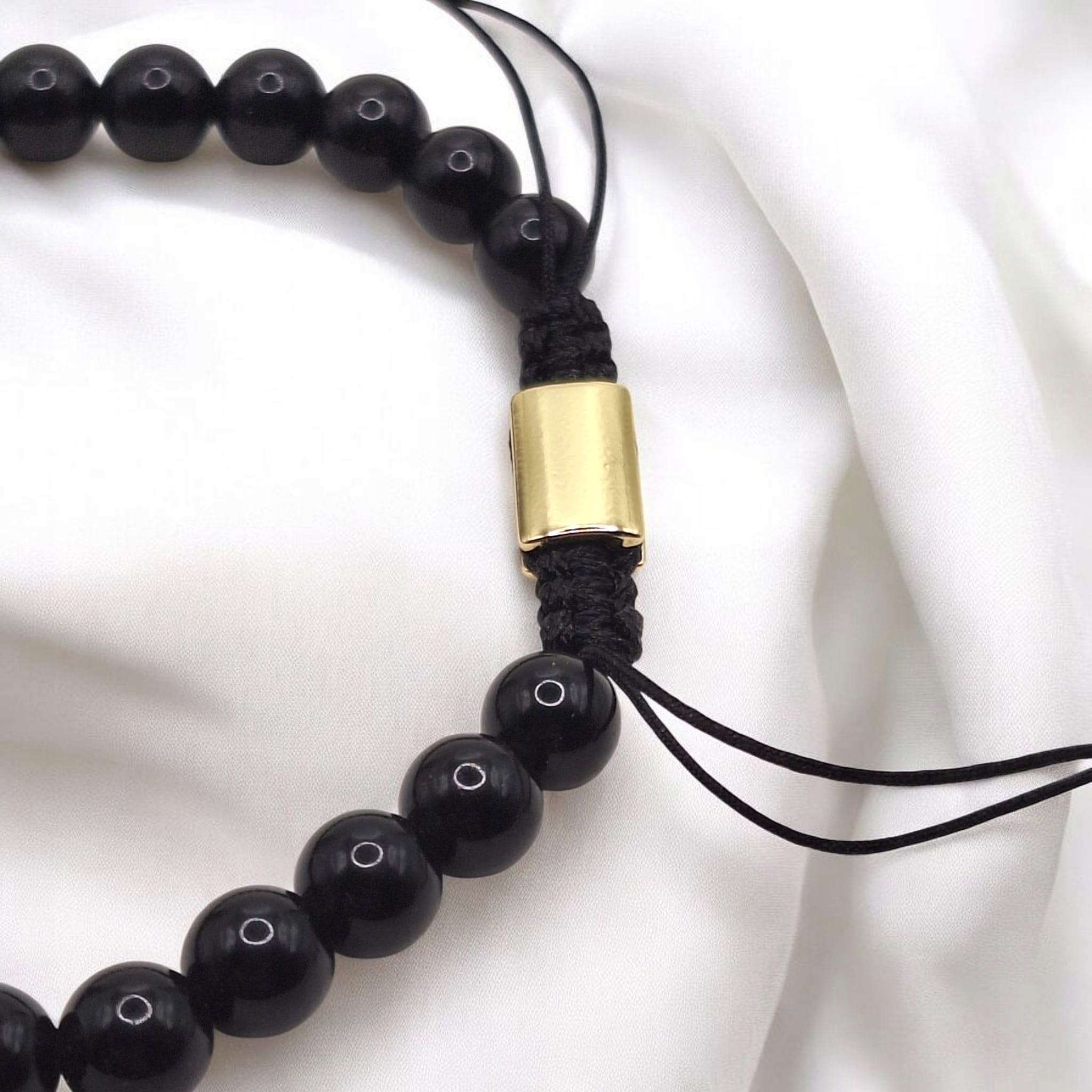 ✔️ Wykonana na czarnym sznurku, z regulacją 17 + 7 cm – pasuje na każdy nadgarstek