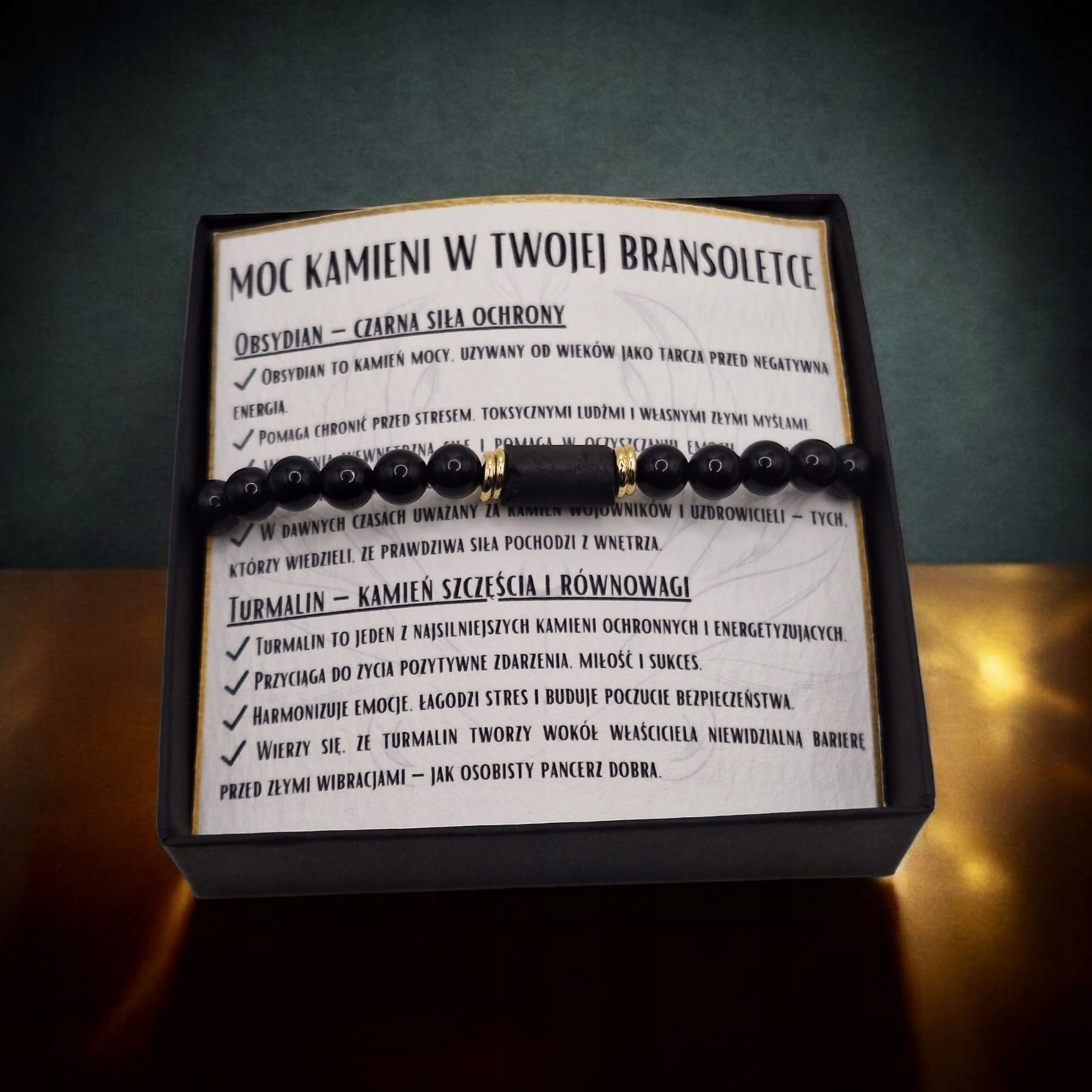 Poznaj naszą wyjątkową bransoletkę stworzoną z naturalnego obsydianu i turmalinu – dwóch kamieni, które od wieków symbolizują ochronę, siłę i szczęście.