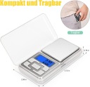 Brencco Precision Balance 500g / 0.01g Cyfrowa waga elektroniczna z podświetlanym wyświetlaczem LCD (jednostki 7), przenośna mini waga do kuchni / kawy / prezentów świątecznych / podróży / leków - srebrna