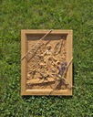 Ze względu na unikalny charakter drewna oraz ręczne wykończenie, każda płaskorzeźba może nieznacznie różnić się od pozostałych (mogą pojawić się naturalne lekkie przebarwienia, odcienie i malutkie sęki) – to właśnie te subtelne różnice nadają im wyjątkowość i niepowtarzalny urok.