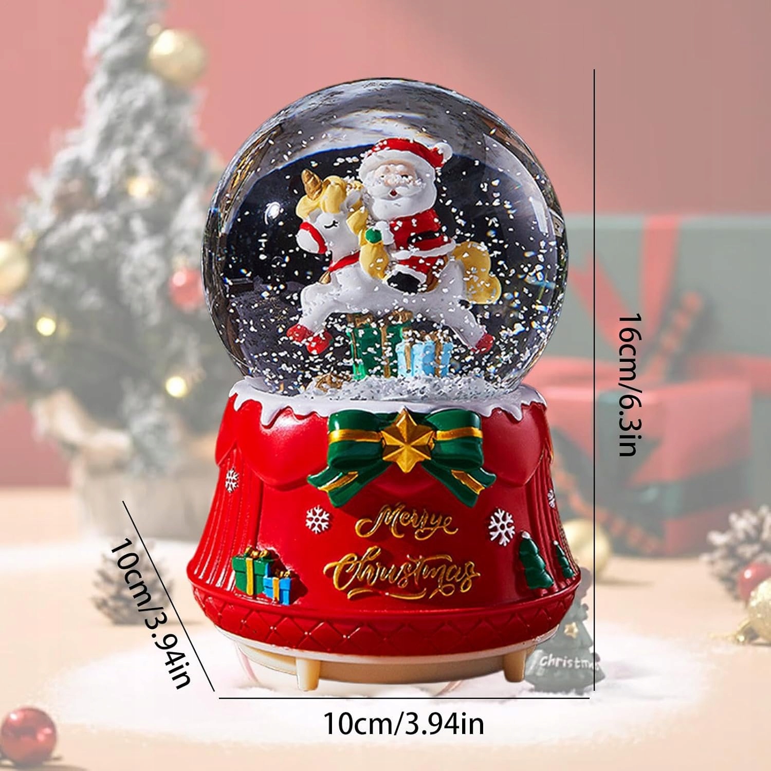 Opis produktu Przynieś trochę świątecznej radości dzięki tej pięknej śnieżnej kuli Świętego Mikołaja. Po włączeniu będziesz cieszyć się uroczą świąteczną muzyką, będąc jednocześnie zahipnotyzowanym słodkim lub wewnątrz. Idealna na prezent dla rodziny i przyjaciół, ta kula śnieżna nadaje się do każdego pomieszczenia w domu. Rozwiń trochę świątecznej radości dzięki temu uroczemu dodatkowi do swojego wystroju.