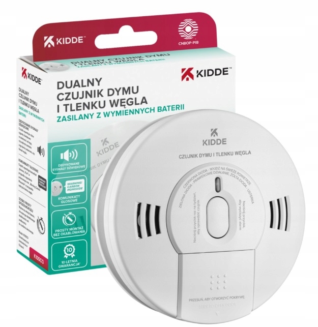 K10SCO to dualny czujnik dymu i tlenku węgla wyposażony w alarm głosowy oraz dwa niezależne sensory. Optyczny odpowiada za wykrywanie alarmów pożarowych, natomiast elektrochemiczny za detekcję tlenku węgla (CO).