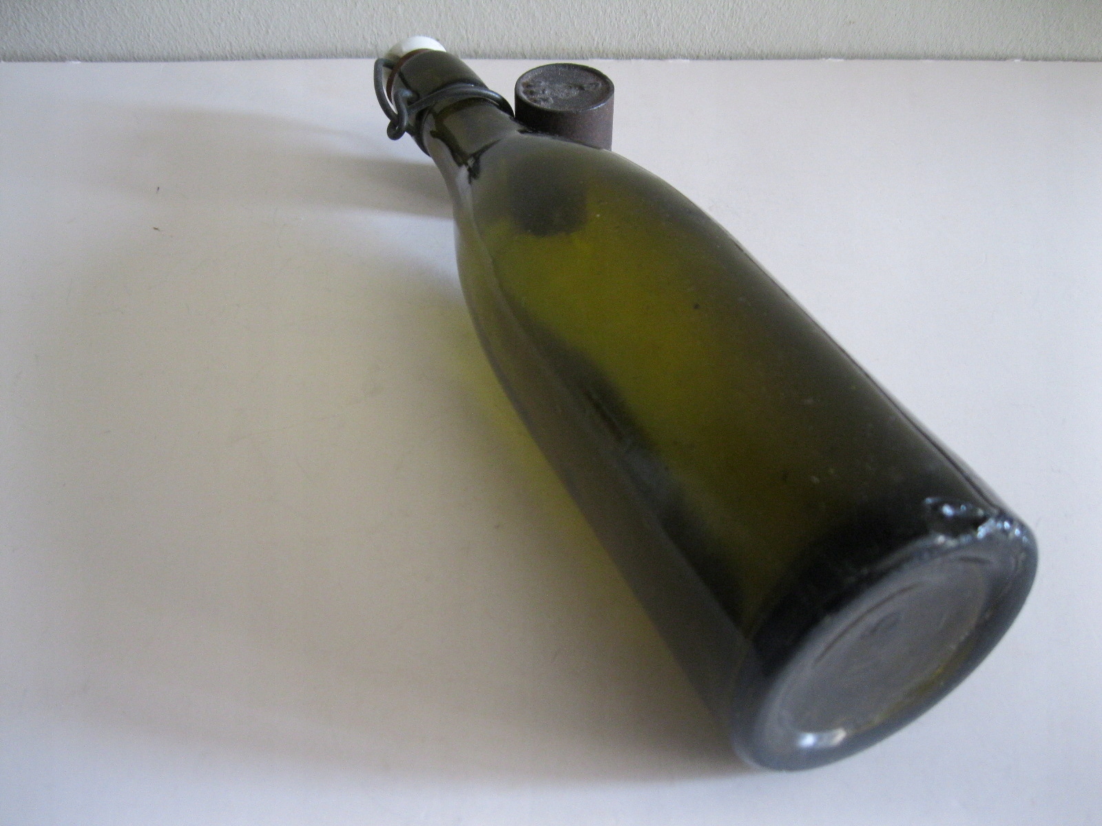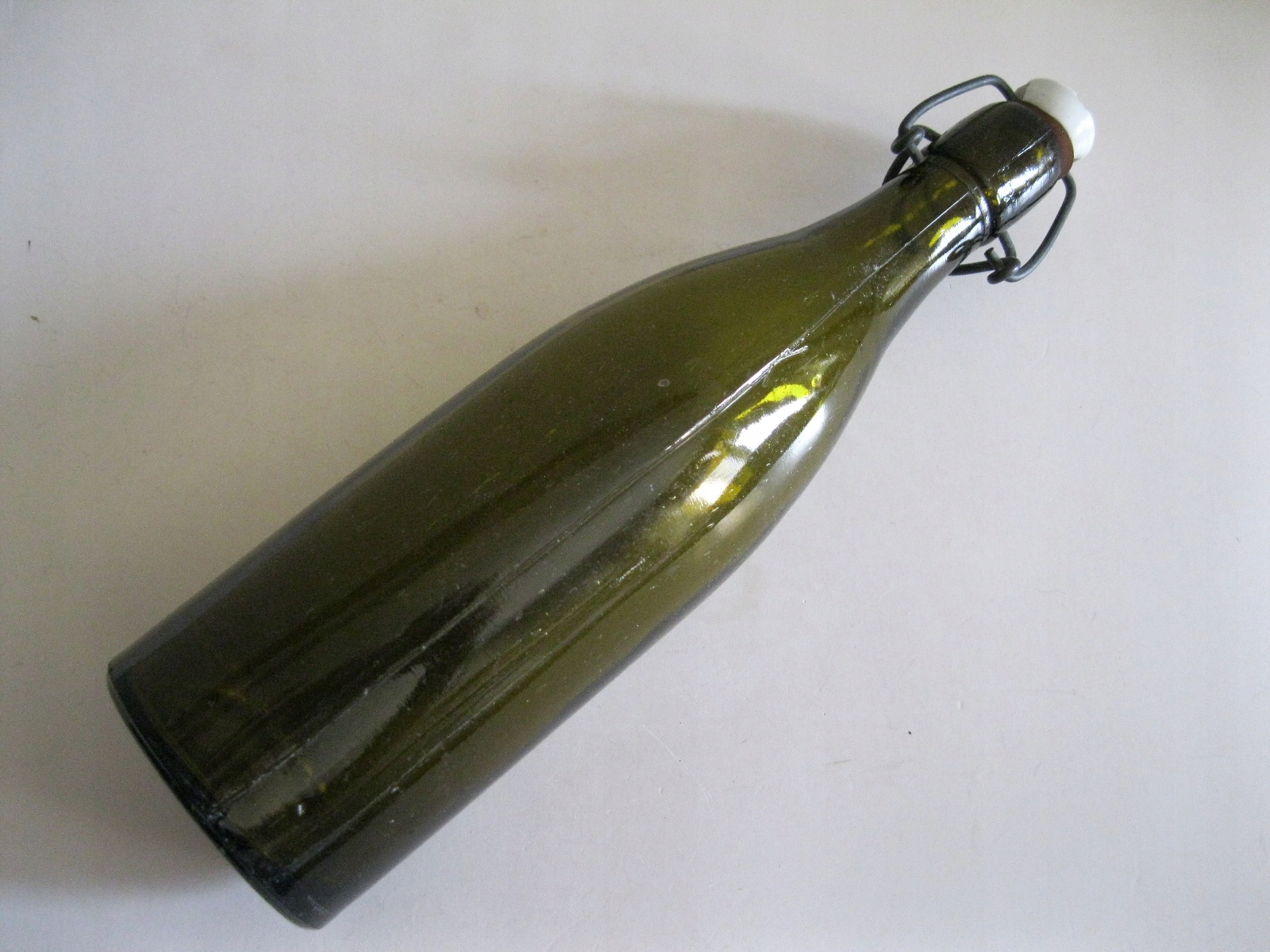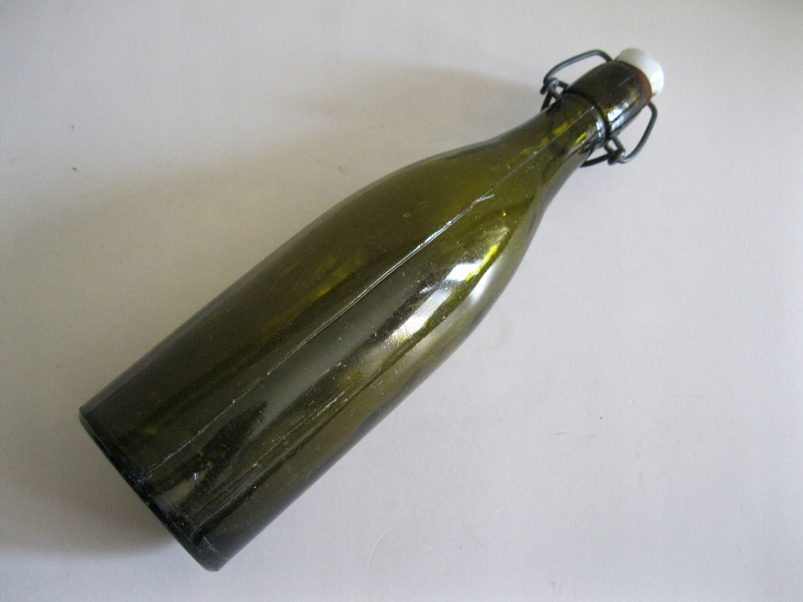 Oryginalna, stara, polska szklana butelka od oranżady z czasów PRL Wykonana z przeźroczystego szkła w ciemnym brązowym kolorze. Butelka w komplecie z oryginalnym porcelanowym korkiem i oryginalnym metalowym zamknięciem. Zachowana w ogólnie w stanie bardzo dobrym, wygląda, że jest cała bez uszkodzeń, jednak przy wnikliwym oglądaniu można dostrzec niewielkie drobne odpryski na porcelanowym korku oraz większy z boku na dnie butelki. Na dnie posiada wypukły wycisk określający pojemność. Polecam !