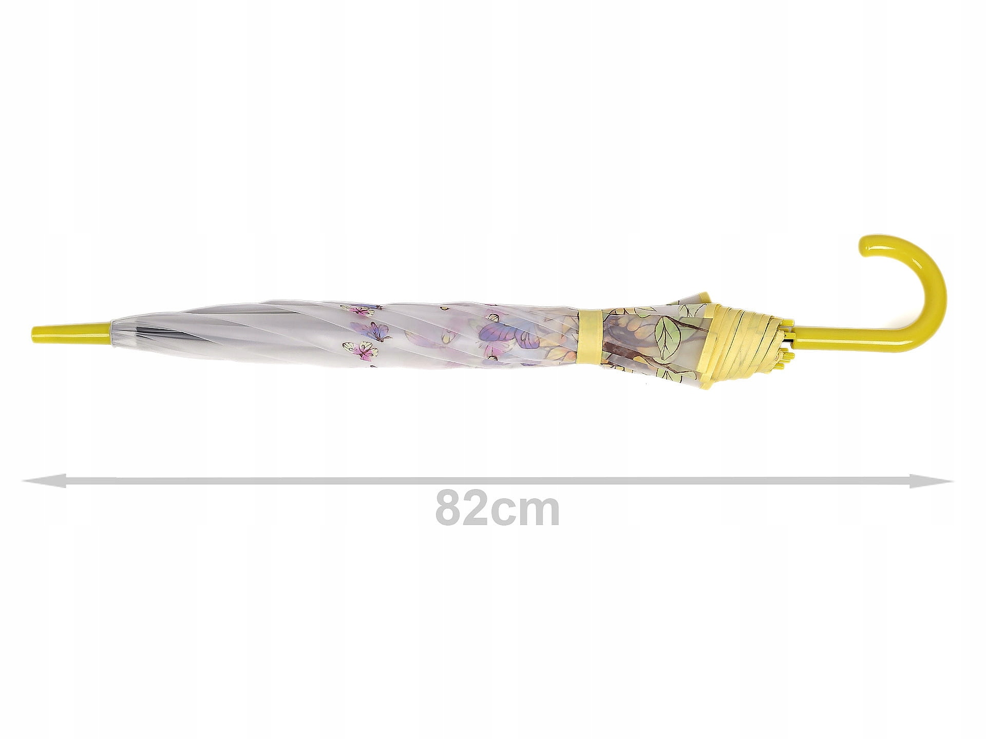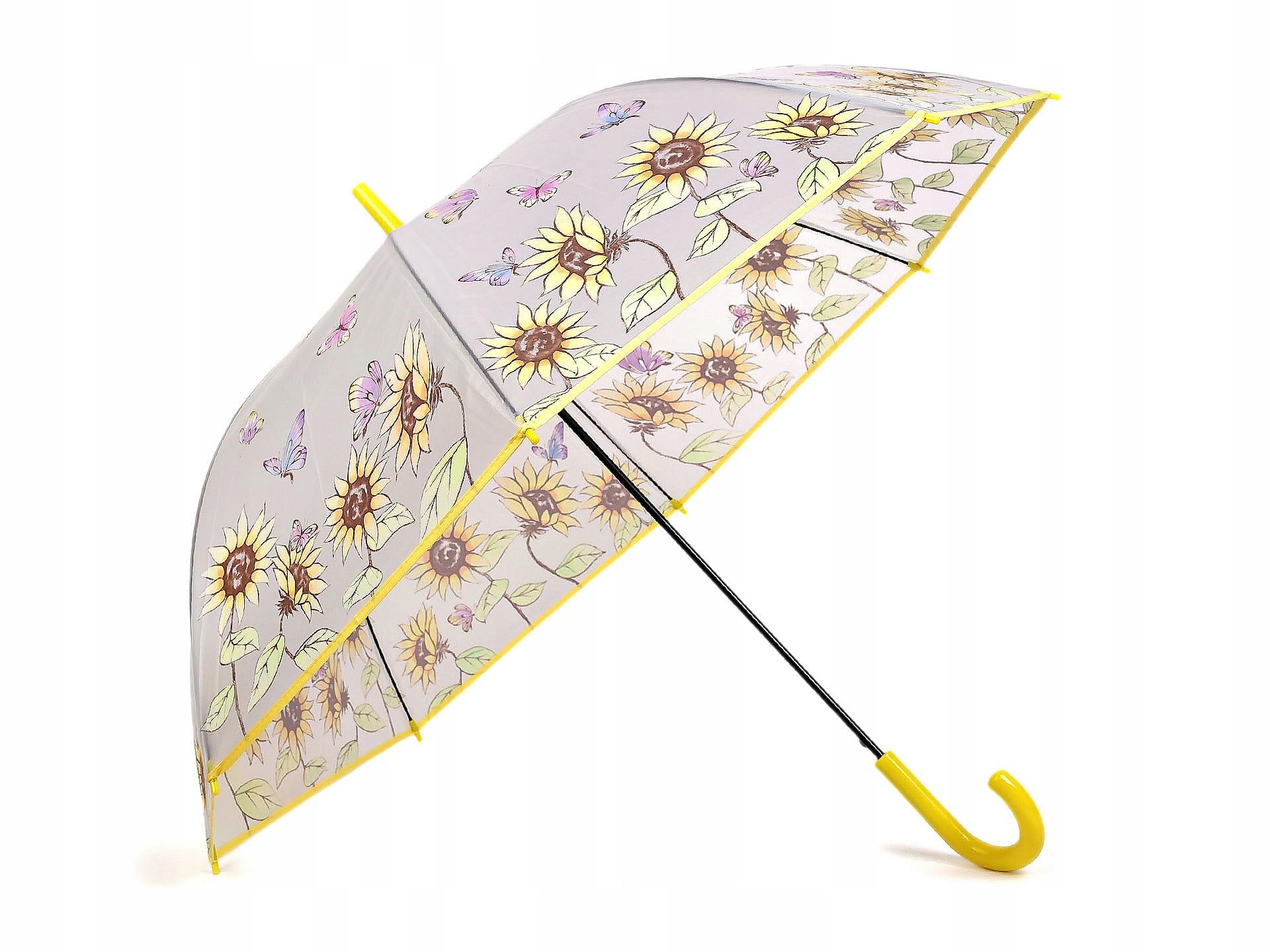 Wyjątkowy parasol to połączenie estetyki i praktyczności. Transparentna folia ozdobiona kolorowymi słonecznikami i subtelnymi motylkami zachwyca lekkością i radosnym designem. Idealnie sprawdzi się zarówno dla dorosłych kobiet, jak i młodszych użytkowniczek.