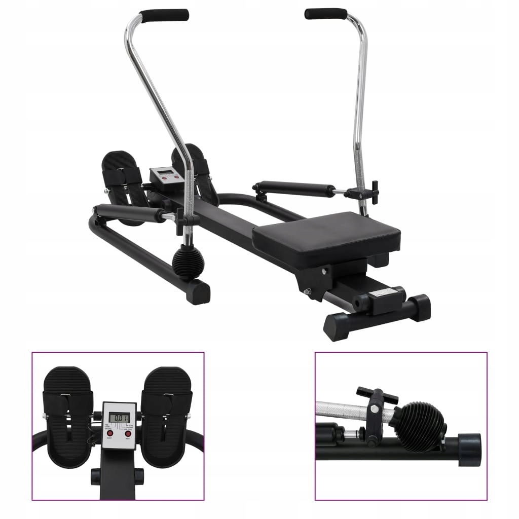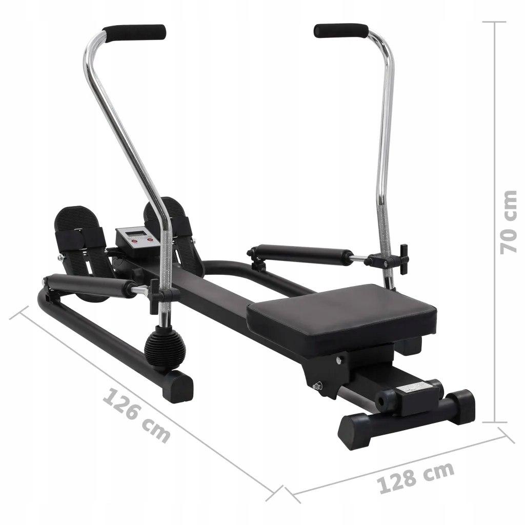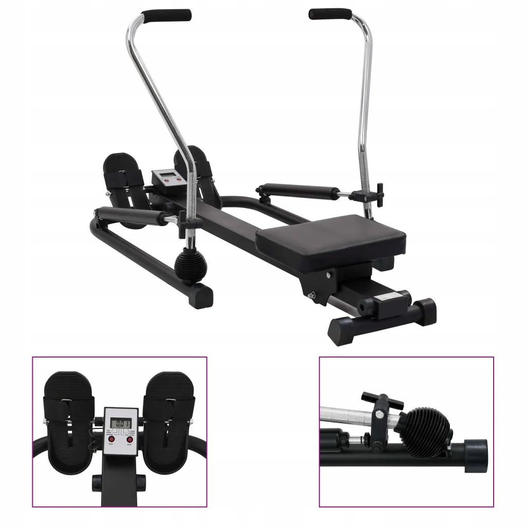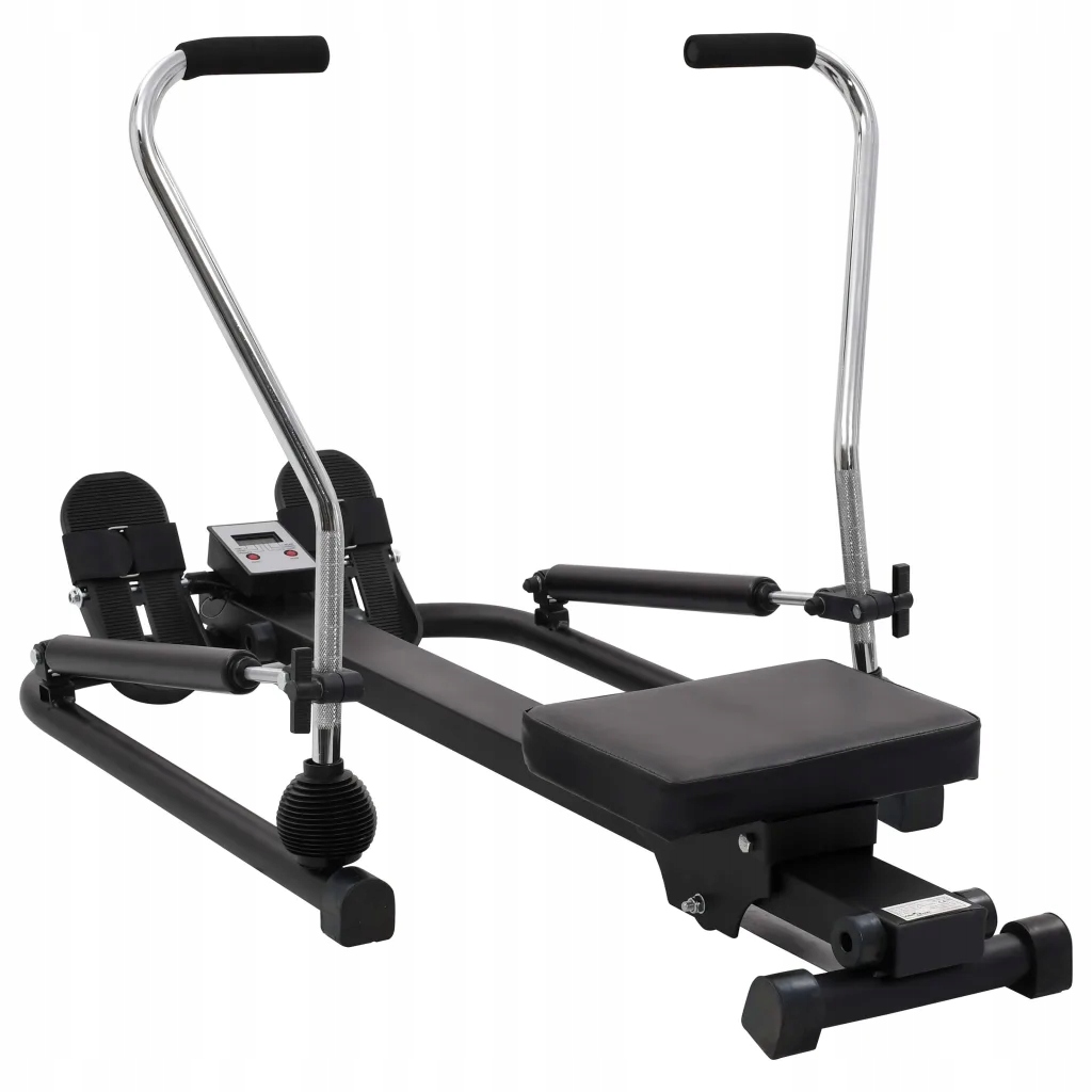 To urządzenie zapewnia skuteczny i niewymagający trening, który zwiększa siłę głównych grup mięśni, w tym pleców, nóg, ramion, brzucha i pośladków. Może również stymulować krążenie krwi. Trenażer z regulowanymi na 5 poziomach, hydraulicznymi siłownikami oraz ręcznym pokrętłem regulacji oporu spełni różne wymagania siłowe. Wbudowany wyświetlacz LCD pomoże monitorować i śledzić prędkość, czas, dystans i spalone kalorie. Grube, wyściełane siedzisko jest bardzo wygodne. Wytrzymała, stalowa rama sprawia, że maszyna jest stabilna i trwała. Antypoślizgowe, gumowe nóżki zapobiegają zarysowaniu podłogi, a gumowe uchwyty zapewniają wygodny chwyt.