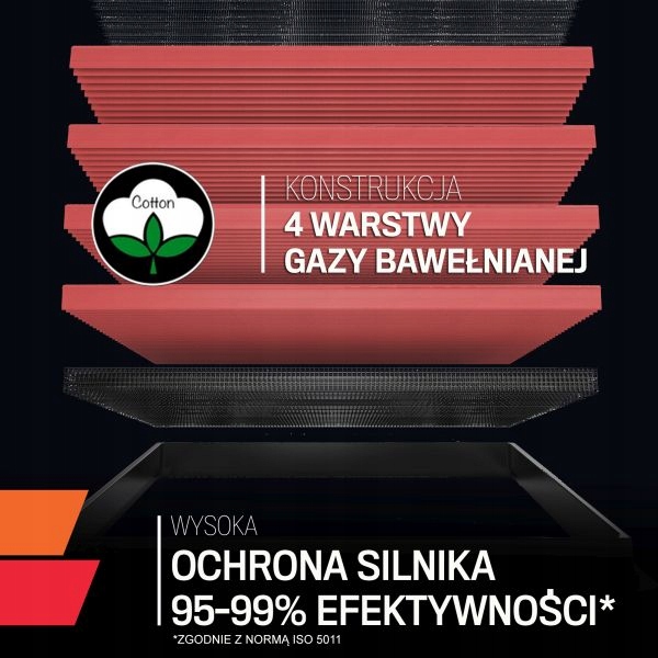 Panelowe filtry powietrza K&N sa zbudowane tak, aby były wiernymi zamiennikami seryjnych, papierowych filtrów powietrza montowanych w Twoim samochodzie. Filtry powietrza firmy K&N są tak skonstruowane, aby uzyskiwać wysoki, praktycznie nieograniczony, przepływ powietrza przy jednoczesnym zachowaniu poziomu filtrowania zapewniającym długą żywotność silnika. Wysokoprzepływowe filtry z wkładem z gazy bawełnianej można myć i używać wielokrotnie. Filtry powietrza K&N składają się z czterech do sześciu warstw bawełny ułożonej pomiędzy dwoma arkuszami aluminiowej siatki. Tak przygotowana warstwa filtracyjna jest składana harmonijkowo co zwiększa jej powierzchnię. Filtry powietrza K&N są filtrami mokrymi, co oznacza, że są nasączone specjalnym olejkiem zatrzymującym najdrobniejsze zanieczyszczenia. Montaż sportowego filtra pozwala zwiększyć ilość powietrza zasysaną do komory spalania co może poprawić osiągi Twojego pojazdu, a możliwość wielkokrotnego wykorzystania takiego filtra zmniejsza koszty eksploatacji. Wszystkie produkty firmy K&N są przyjazne dla środowiska.