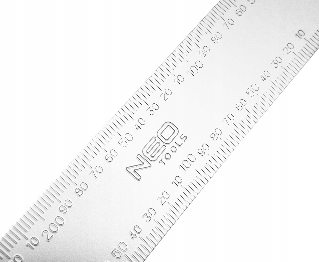Kątownik dachowy 600 x 400 mm 72-130 marki NEO to narzędzie o parametrach 600 x 400 mm, przeznaczone do wyznaczania kąta prostego. Na powierzchni ma wygrawerowaną podziałkę, cechowaną co 2 mm. Jest ona odporna na ścieranie. Kątownik posiada także tabelę określenia długości krokwi i tabelę z podanymi kątami przycięcia, zależnymi od wartości spadku na metr rzutu krokwi. To narzędzie od marki NEO przeznaczone na plac budowy.