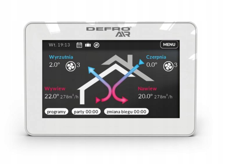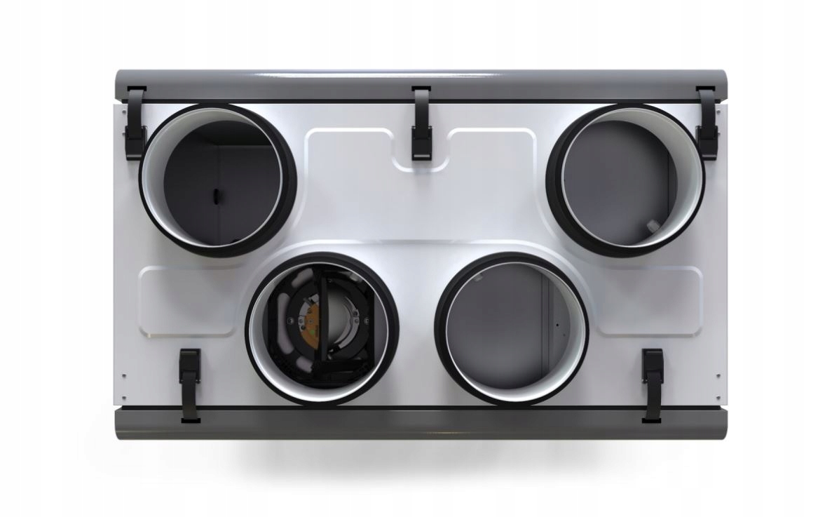 Centrala rekuperacyjna wyposażona w regulator z kolorowym panelem dotykowym ST-340 wyświetlaczem o przekątnej 4,3”, który steruje pracą centrali wentylacyjnej. W standardzie zestaw do montażu ściennego