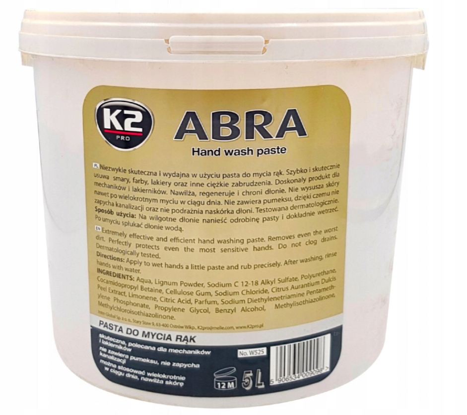 już niewielka ilość pasty wystarcza do skutecznego oczyszczenia dłoni. K2 ABRA jest wydajna i wyjątkowo ekonomiczna w użyciu,