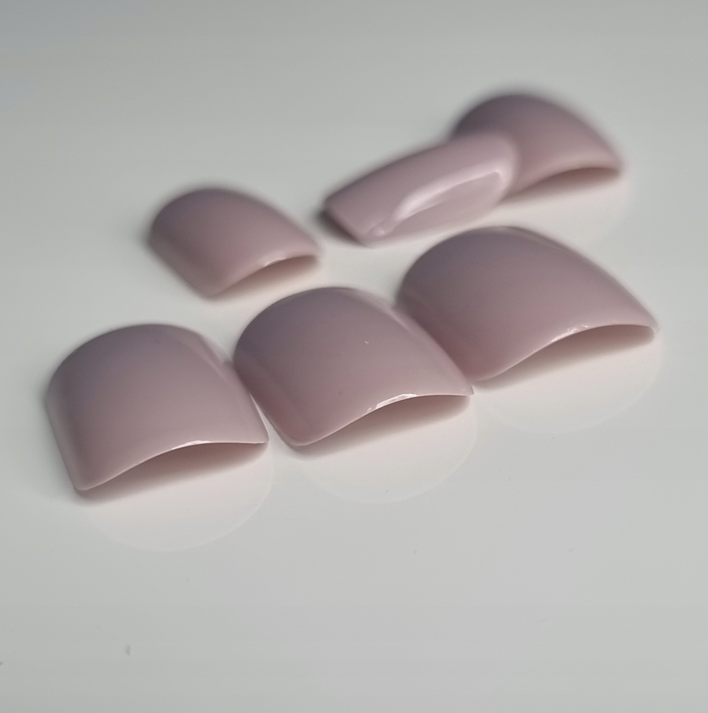 ✔️ Tipsy gotowe paznokcie w kształcie krótkiego kwadratu. Naklejane sztuczne paznokcie żelowe nude.