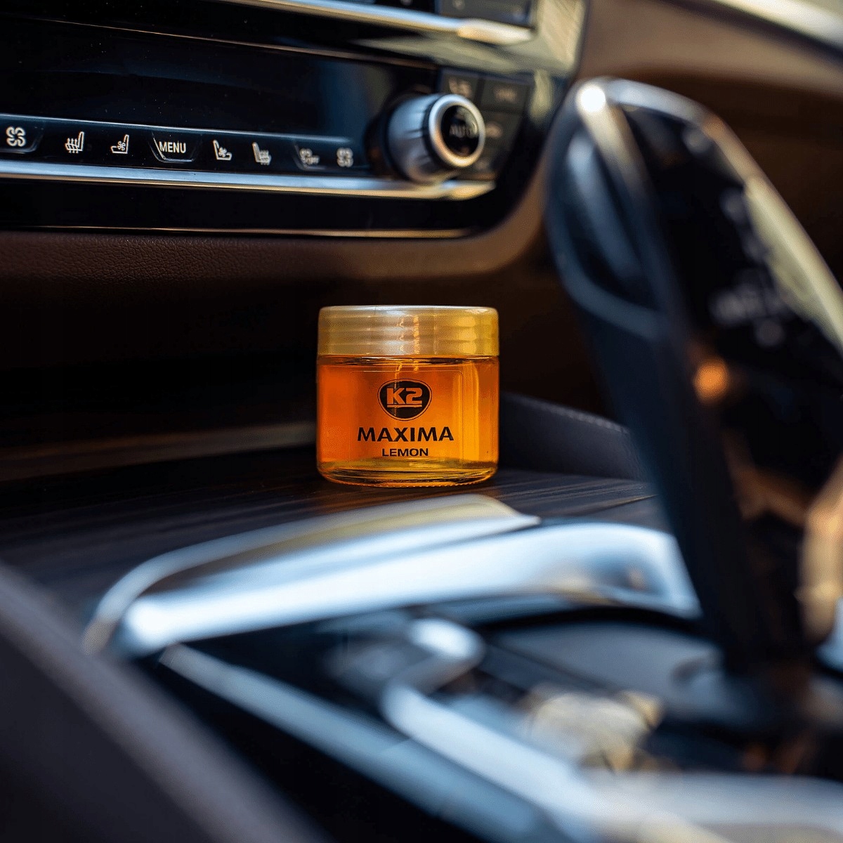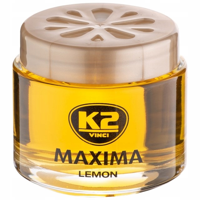 K2 MAXIMA to uniwersalny zapach do samochodu w formie szklanego słoiczka wypełnionego zapachowym żelem.