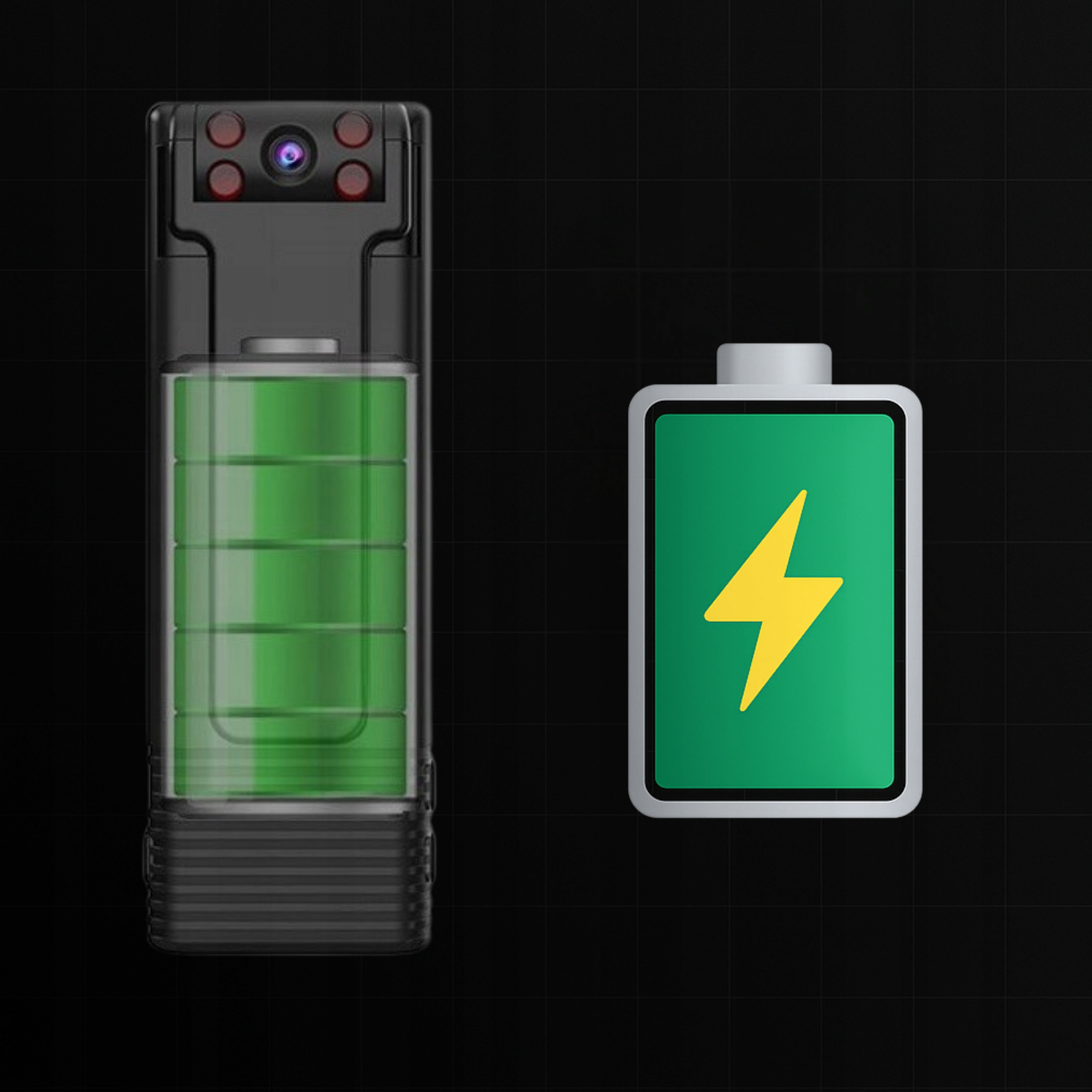 ➡️ Wbudowana bateria 1050 mAh zapewnia aż 10 godzin nagrywania dźwięku i 8 godzin wideo