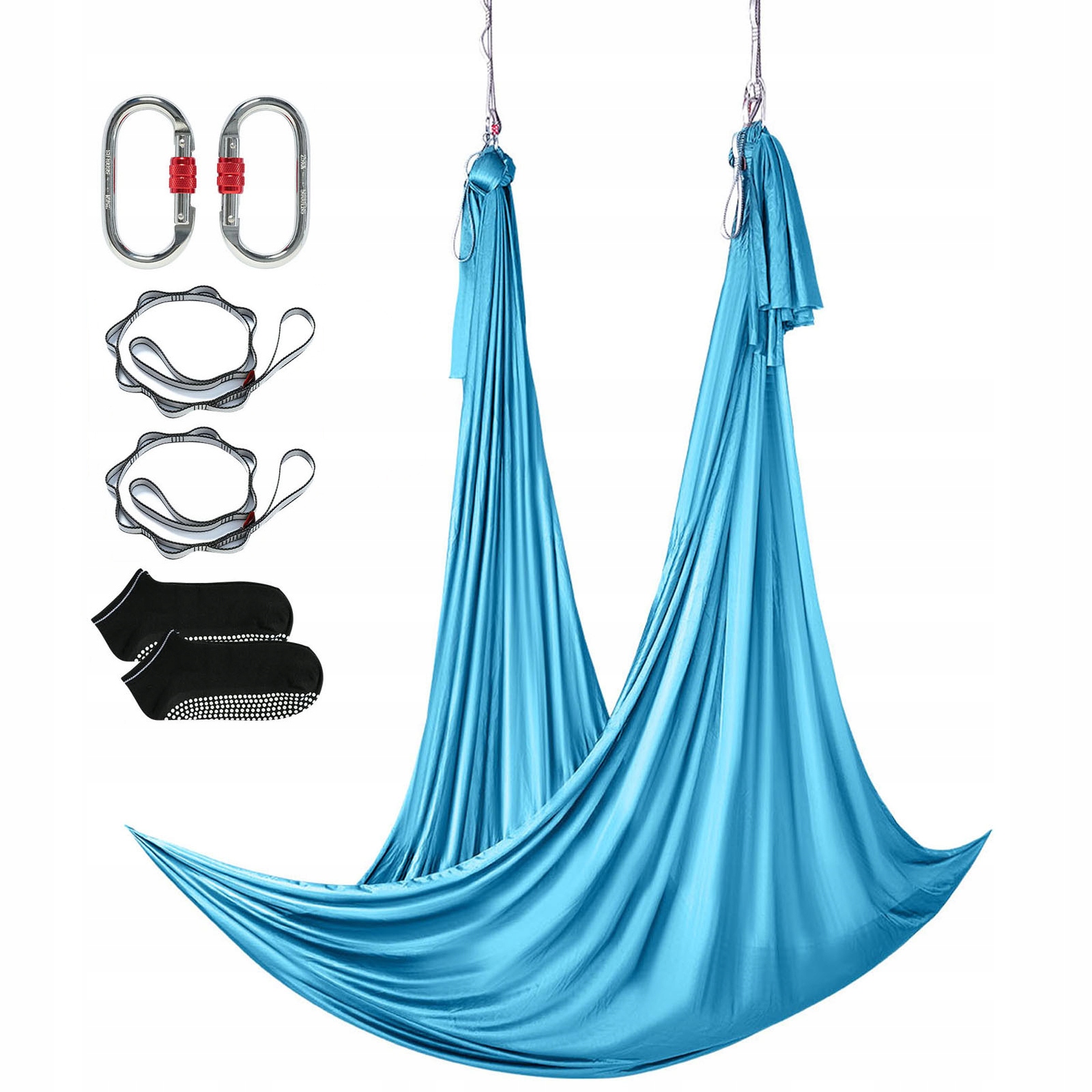 Bogate akcesoria: Nasz hamak do jogi jest wyposażony w różnorodne akcesoria, które przekształcają go w huśtawkę powietrzną i zwiększają jego wszechstronność. Możesz go używać do różnych pozycji jogi i aktywności rekreacyjnych, zarówno w studiu jogi, w domu, jak i na świeżym powietrzu.