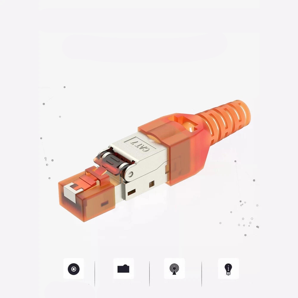 4. Złącze sieciowe CAT7 CAT7A RJ45 obsługuje transmisje gigabitowe dla częstotliwości roboczych do 1000 MHz, w szczególności CAT 6A, CAT 7, CAT 8.1, T568A, T568B oraz PoE plus.