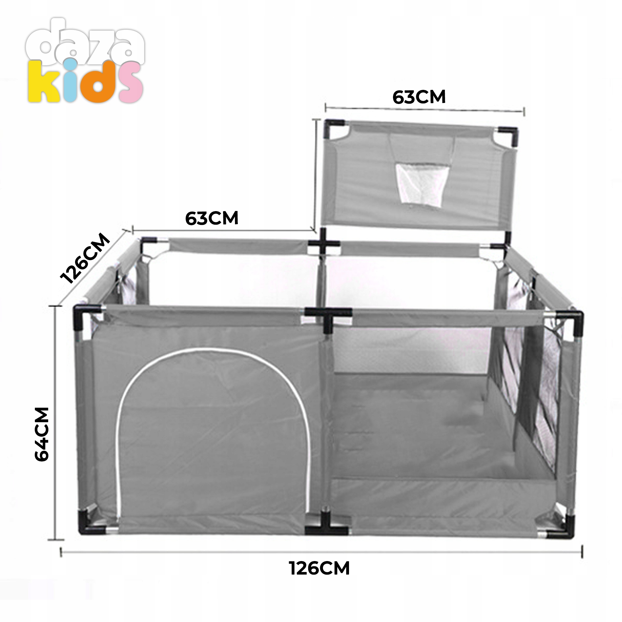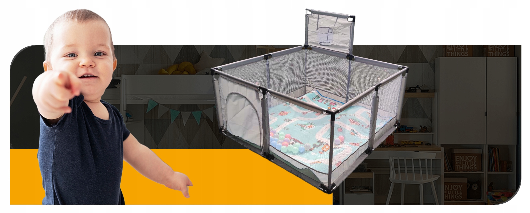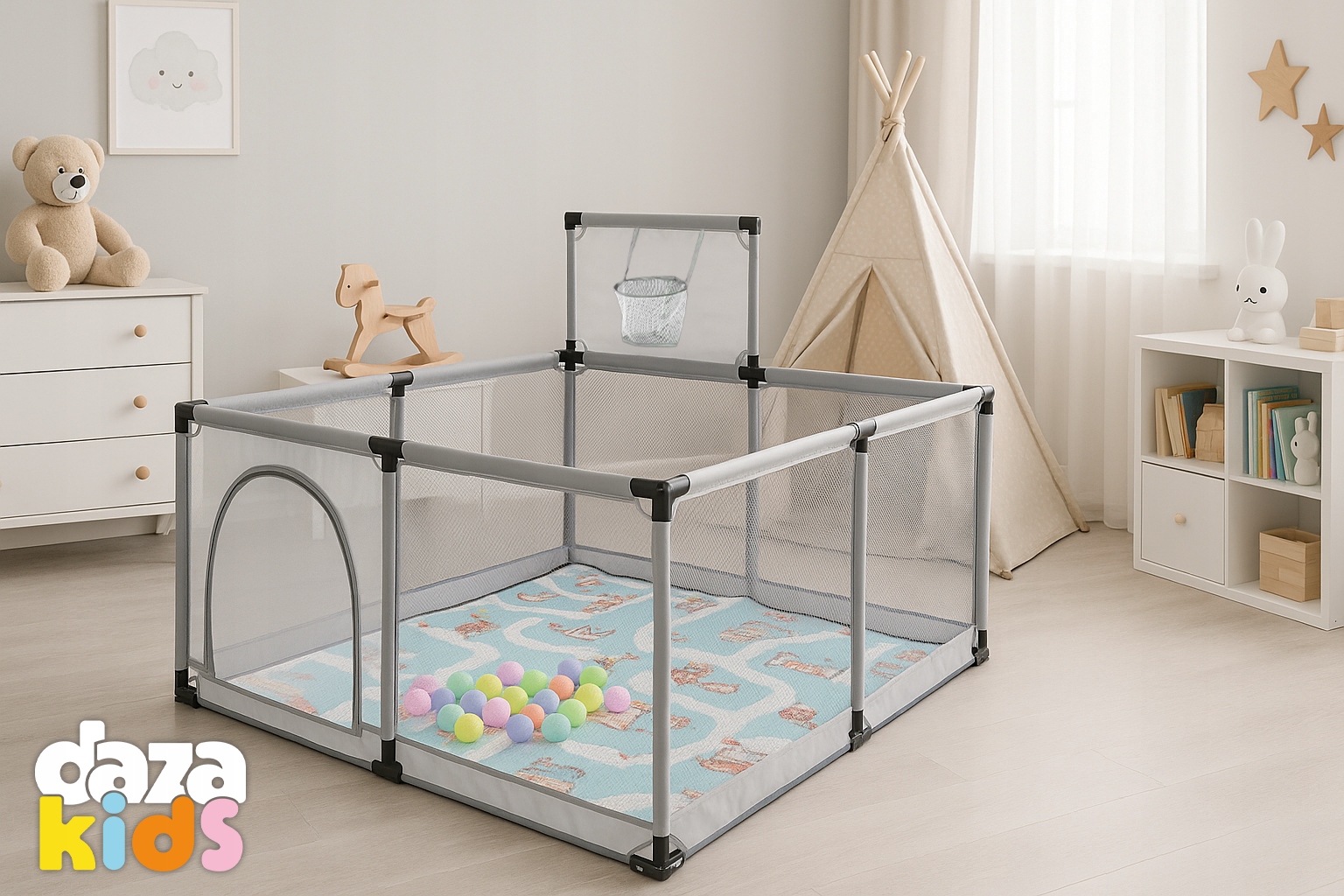 Stwórz bezpieczną i radosną strefę zabawy dla swojego malucha! Kojec DAZAKIDS to przestronny, nowoczesny plac zabaw, który idealnie sprawdzi się zarówno w domu, jak i na zewnątrz. Dzięki dołączonej miękkiej macie, maluch może bawić się komfortowo i bezpiecznie nawet na twardszej powierzchni. W zestawie znajduje się także kosz do koszykówki oraz 30 kolorowych piłeczek, które zapewnią wiele godzin aktywnej zabawy.