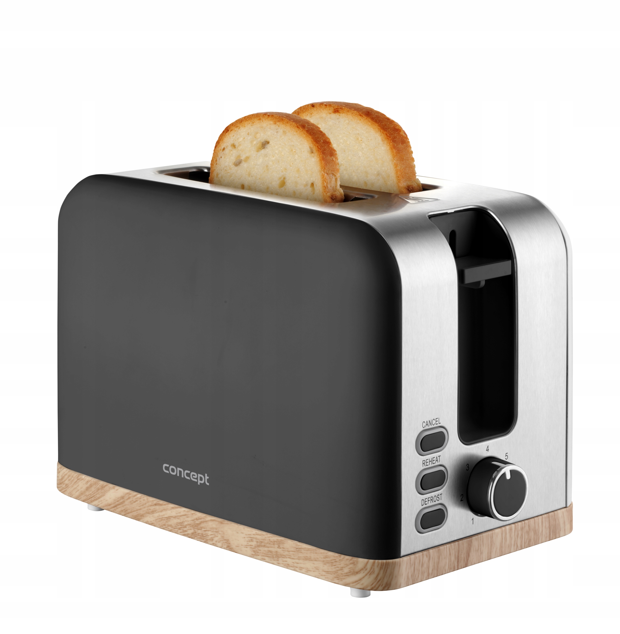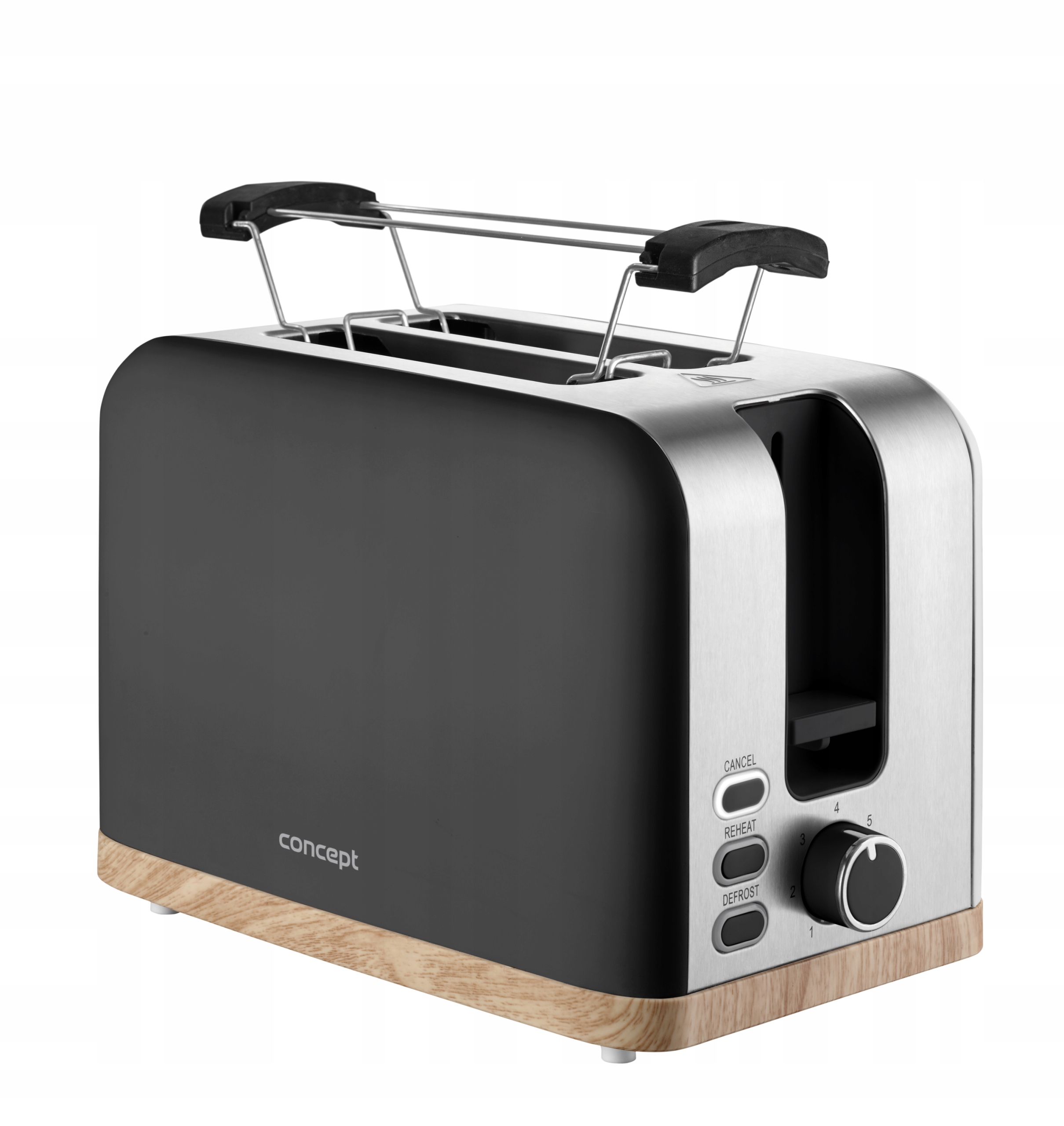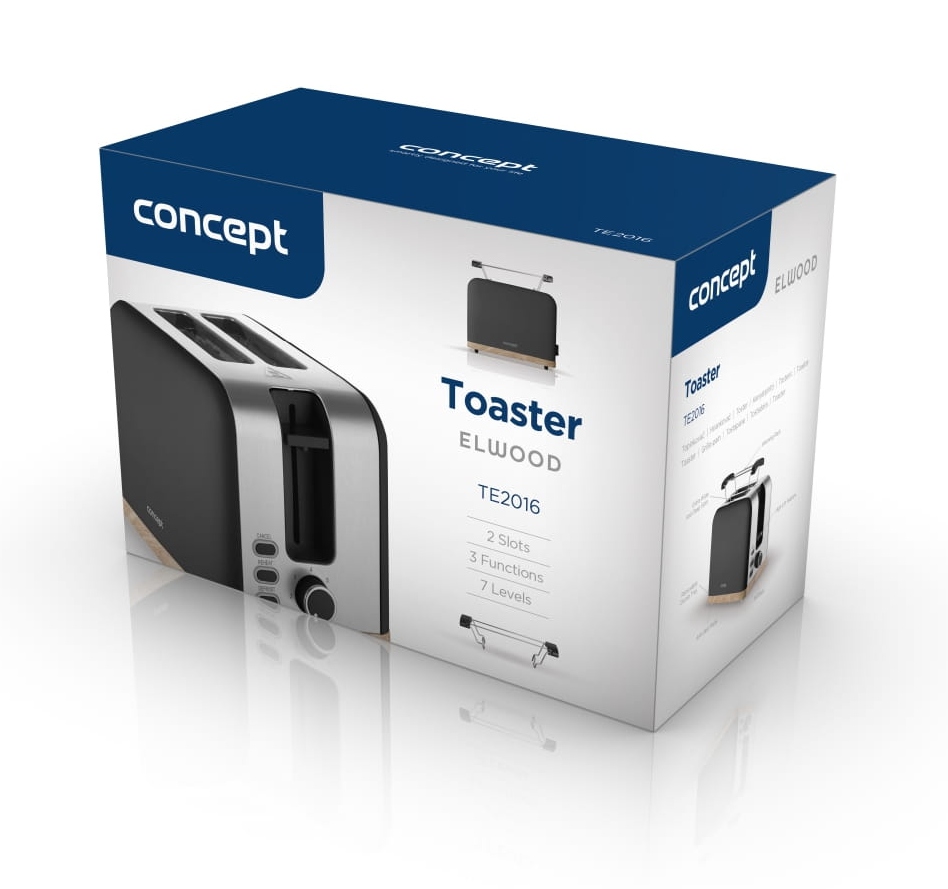 Toster Concept TE2016 ELWOOD umożliwia szybkie i łatwe przygotowanie chrupiących tostów. Dzięki 7 poziomom opiekania możesz delektować się pieczywem dokładnie takim, jak lubisz – lekko zrumienionym lub idealnie złocistym. Wyposażony jest w dwa otwory do opiekania oraz funkcje rozmrażania, ponownego podgrzewania i natychmiastowego przerwania pracy. Po zakończeniu ustawionego czasu pieczywo automatycznie się wysuwa, a urządzenie wyłącza.