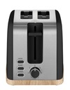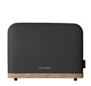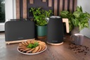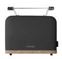 Minimalistyczne wykonanie tostera TE2016 ELWOOD w matowej czerni wygląda nowocześnie i świeżo, a detal w stylu drewna dodaje mu ciepłego i przytulnego charakteru. Ta harmonijna kombinacja pasuje do różnych stylów wnętrz – od skandynawskiego po rustykalny. W połączeniu z czajnikiem elektrycznym Concept RK3316 ELWOOD tworzy spójny i elegancki zestaw do kuchni.