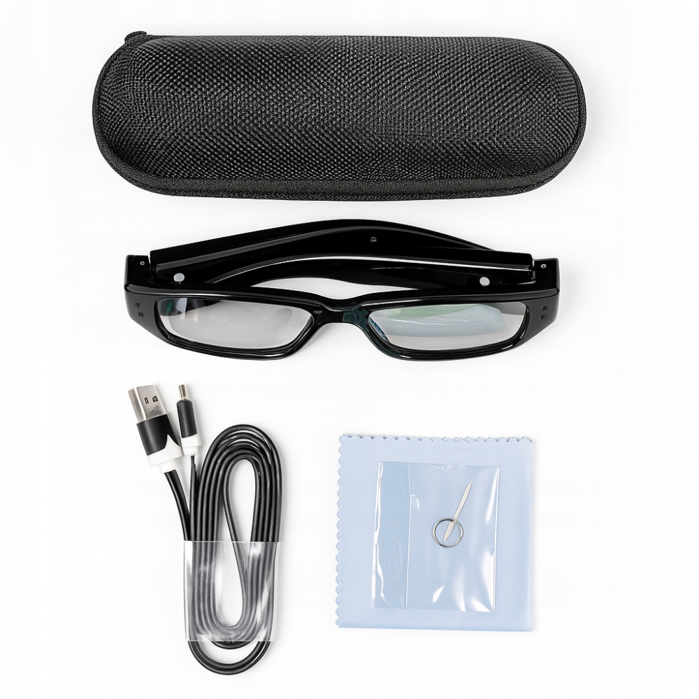 Dzięki ukryciu kamery w eleganckiej oprawce okularów urządzenie wygląda jak zwykłe okulary korekcyjne i nie wzbudza żadnych podejrzeń otoczenia. Brak migających diod oraz cicha praca sprawiają, że nagrywanie odbywa się całkowicie bezgłośnie.