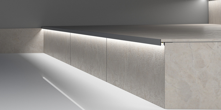 Podpłytkowy profil schodowy, który wyposażony w dobrze dobraną taśmę LED zapewni nie tylko odpowiednią ilość światła, ale również umożliwi estetyczne wykończenie krawędzi stopni. Eleganckie wykończenie profilu z gładką powierzchnią od przodu pasuje do wnętrz o różnym charakterze.