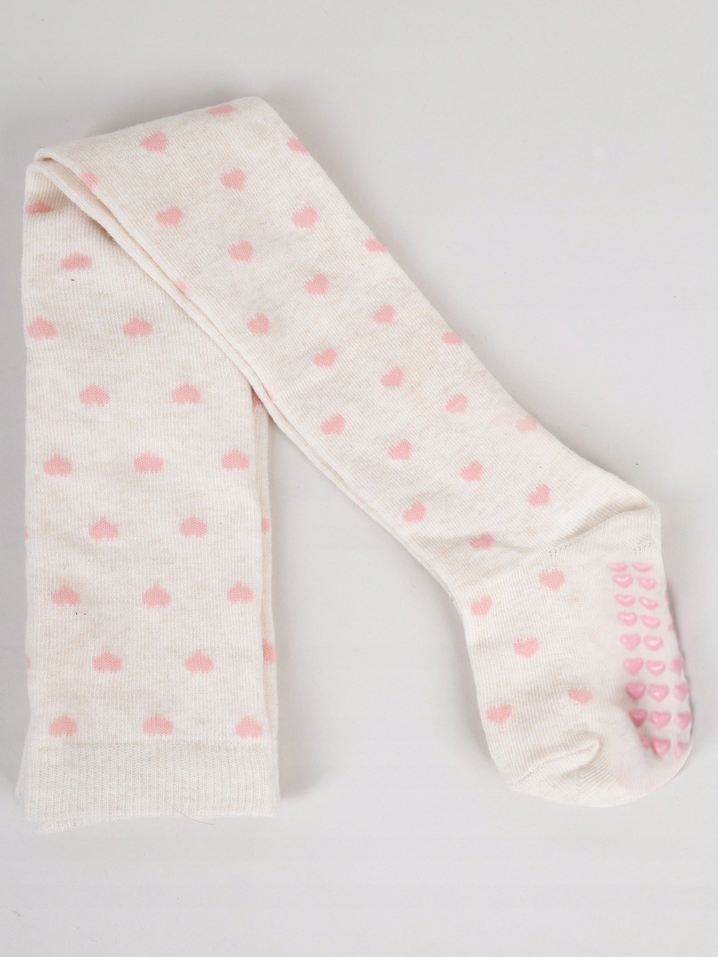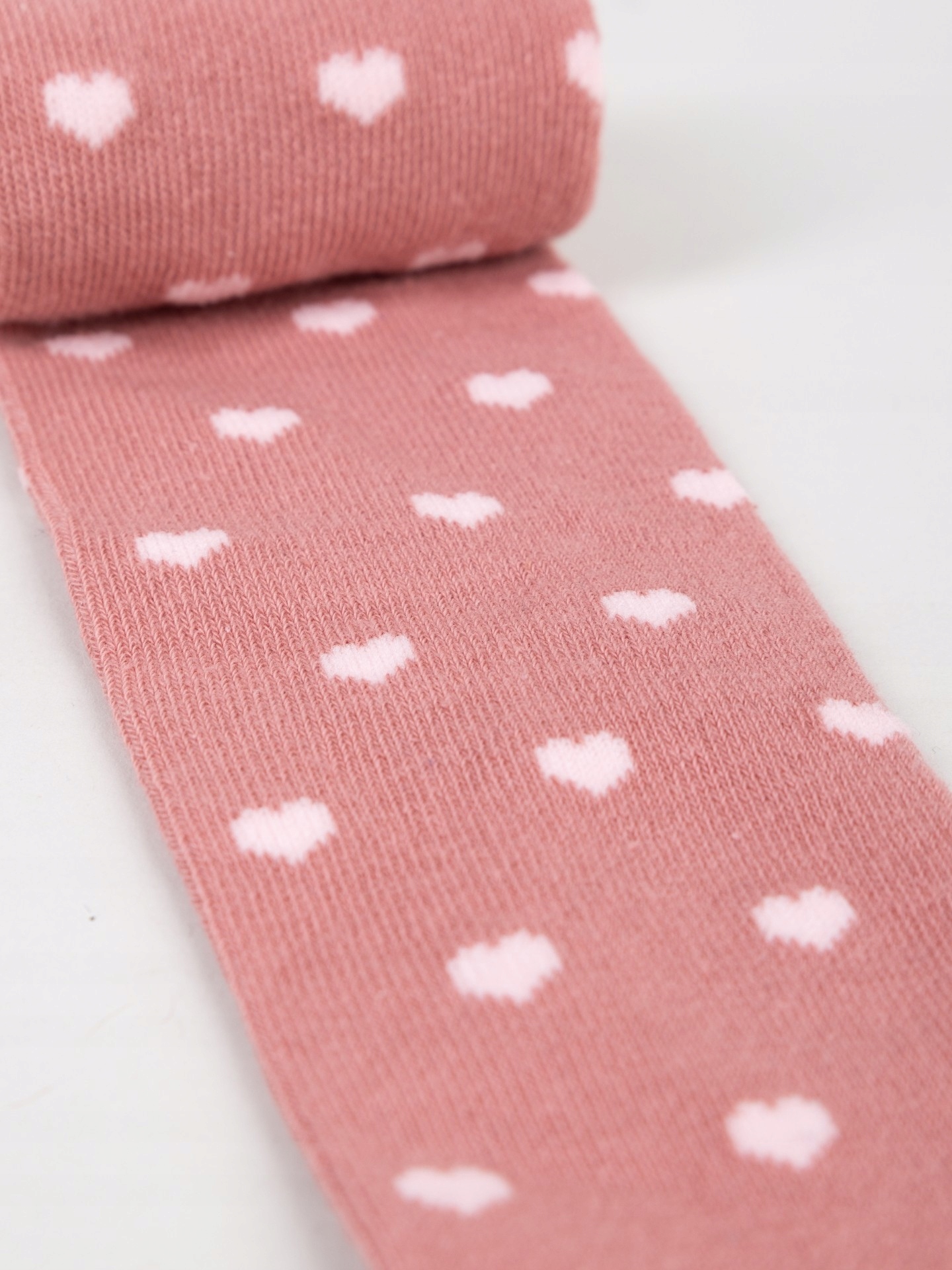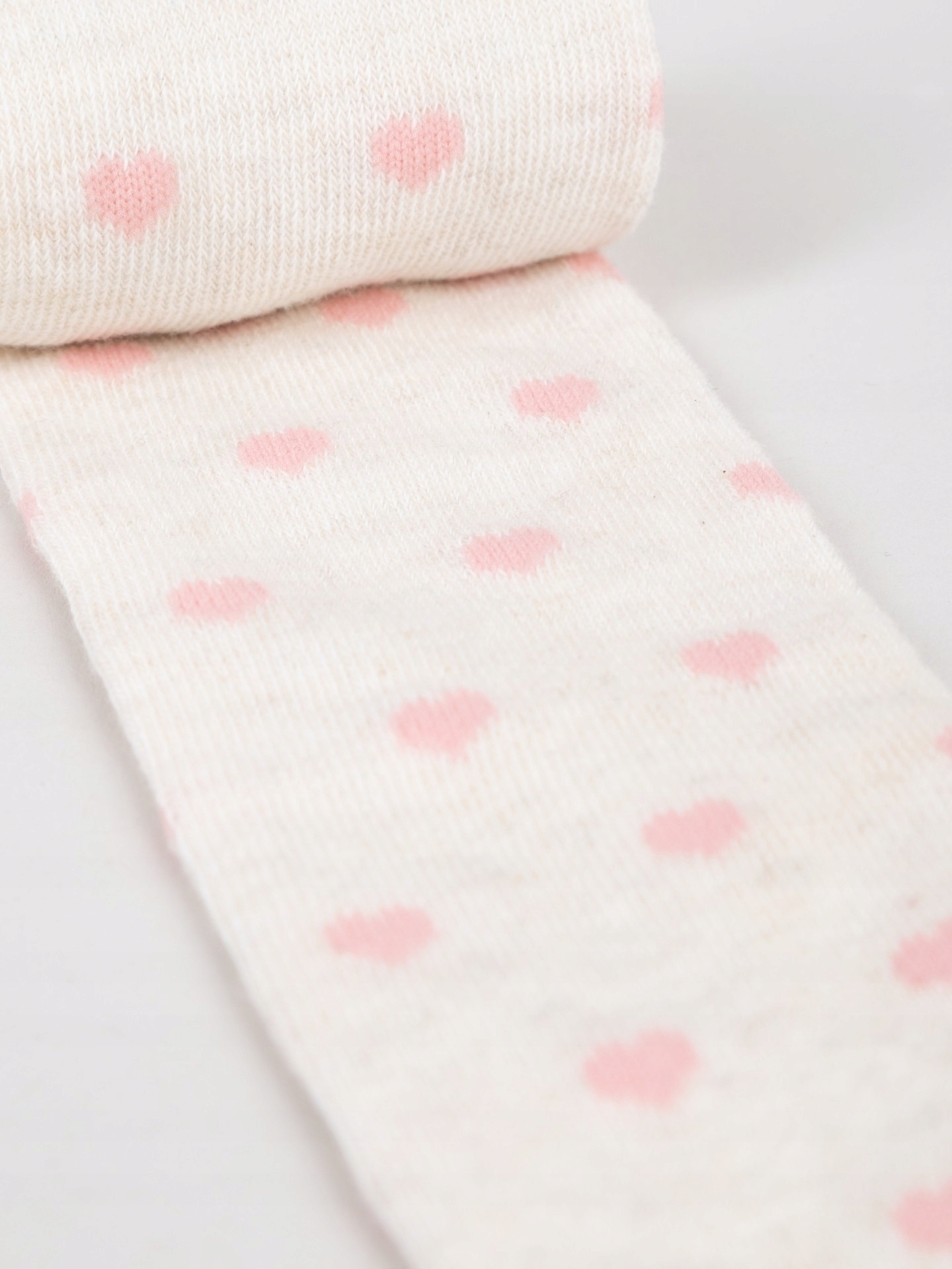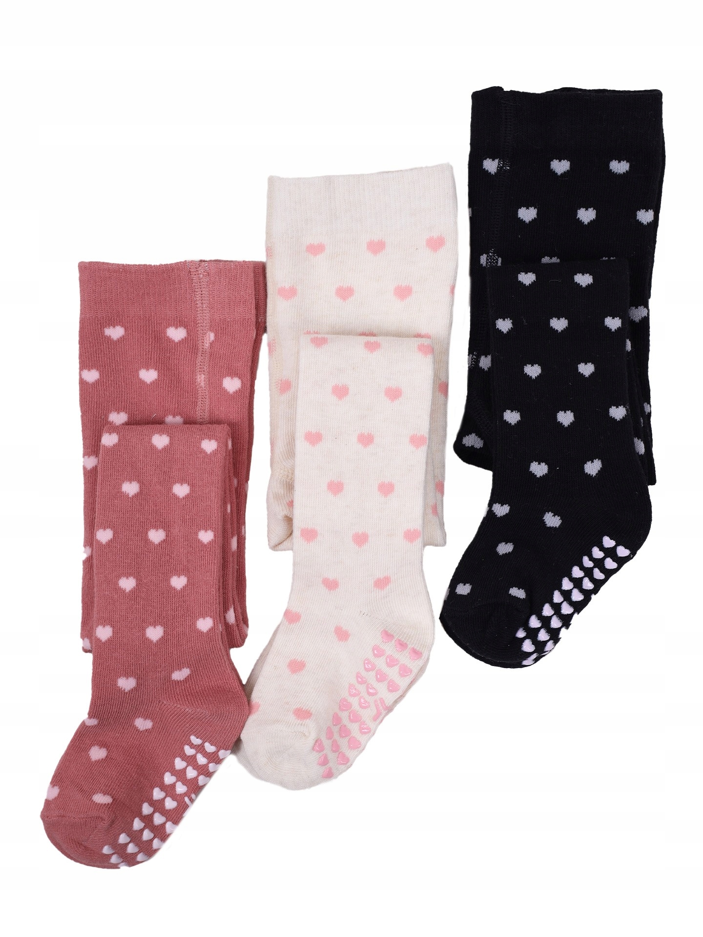 Bawełniane, kryjące rajstopy dla dziewczynki. W dziewczęcych kolorach, z motywem serduszek. Uszyte z miękkiej i zarazem wytrzymałej bawełny, która gwarantuje duży komfort noszenia. Dzięki swojej elastyczności doskonale dopasowują się do nóżki dziecka i nie upijają.