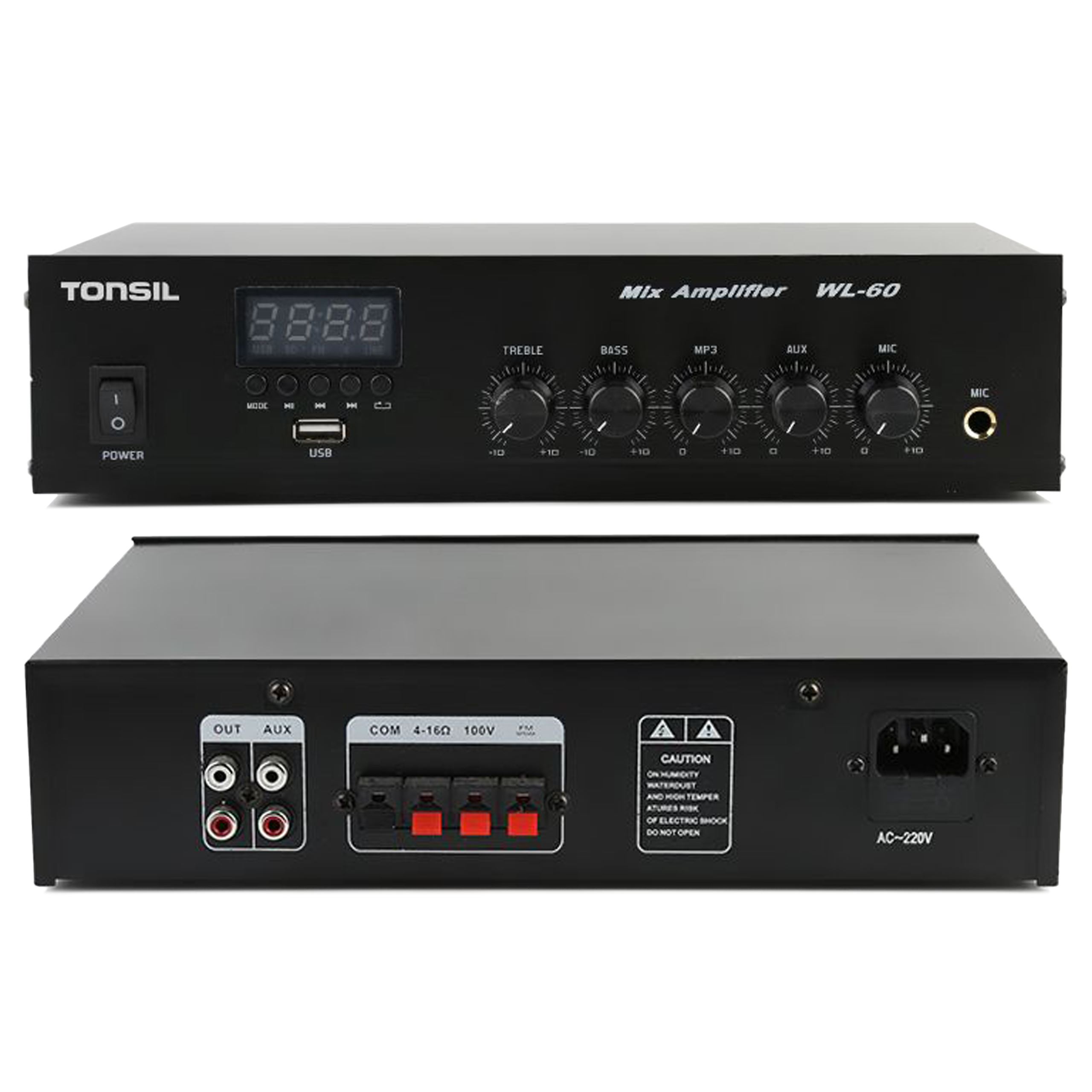 Pomimo niewielkich rozmiarów, wzmacniacz WL-60 oferuje dużą moc wyjściową i jest przystosowany do nagłośnień 4-16 Ohm lub w technice 70V/100V.