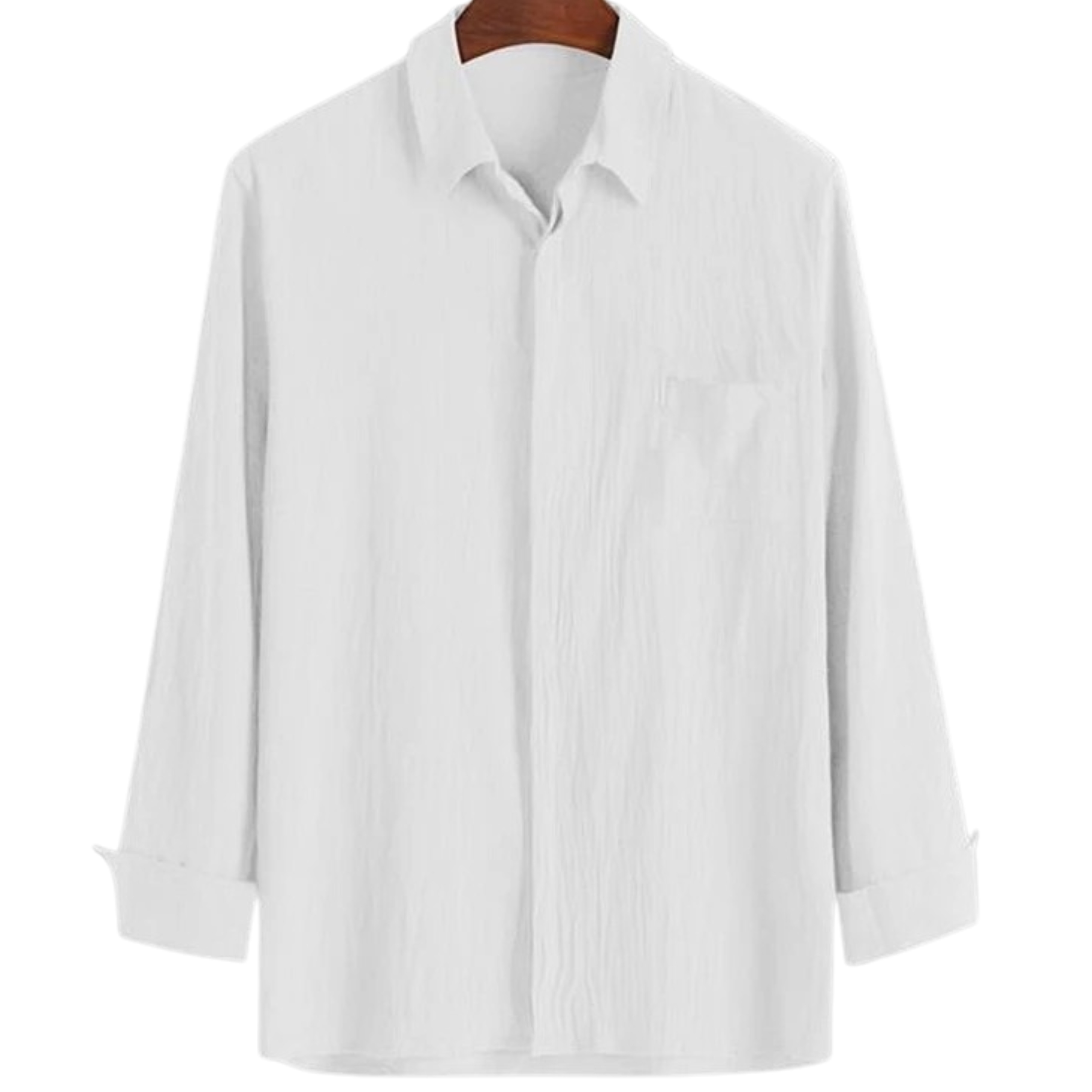 Koszula dla chłopca lniano bawełniana z guzikami casual długi rękaw biała (#643)