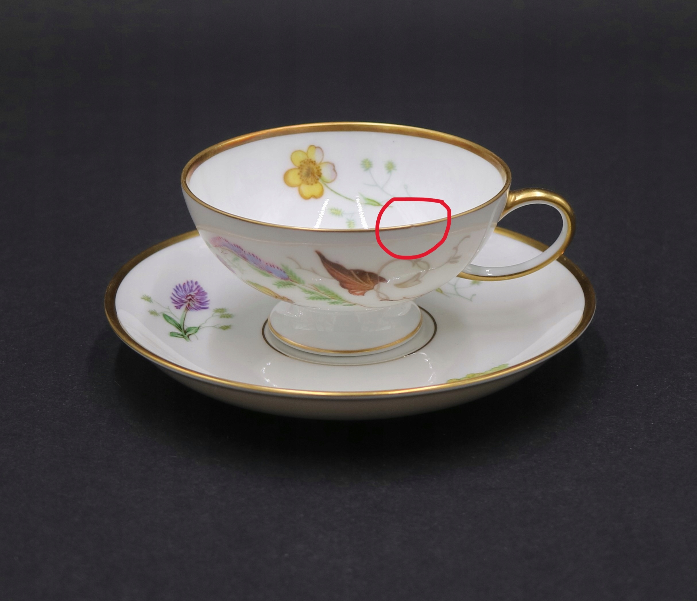 Stan zachowania bardzo dobry ( milimetrowy ubytek na filiżance, wada fabryczna - proszę zobaczyć zdjęcie )