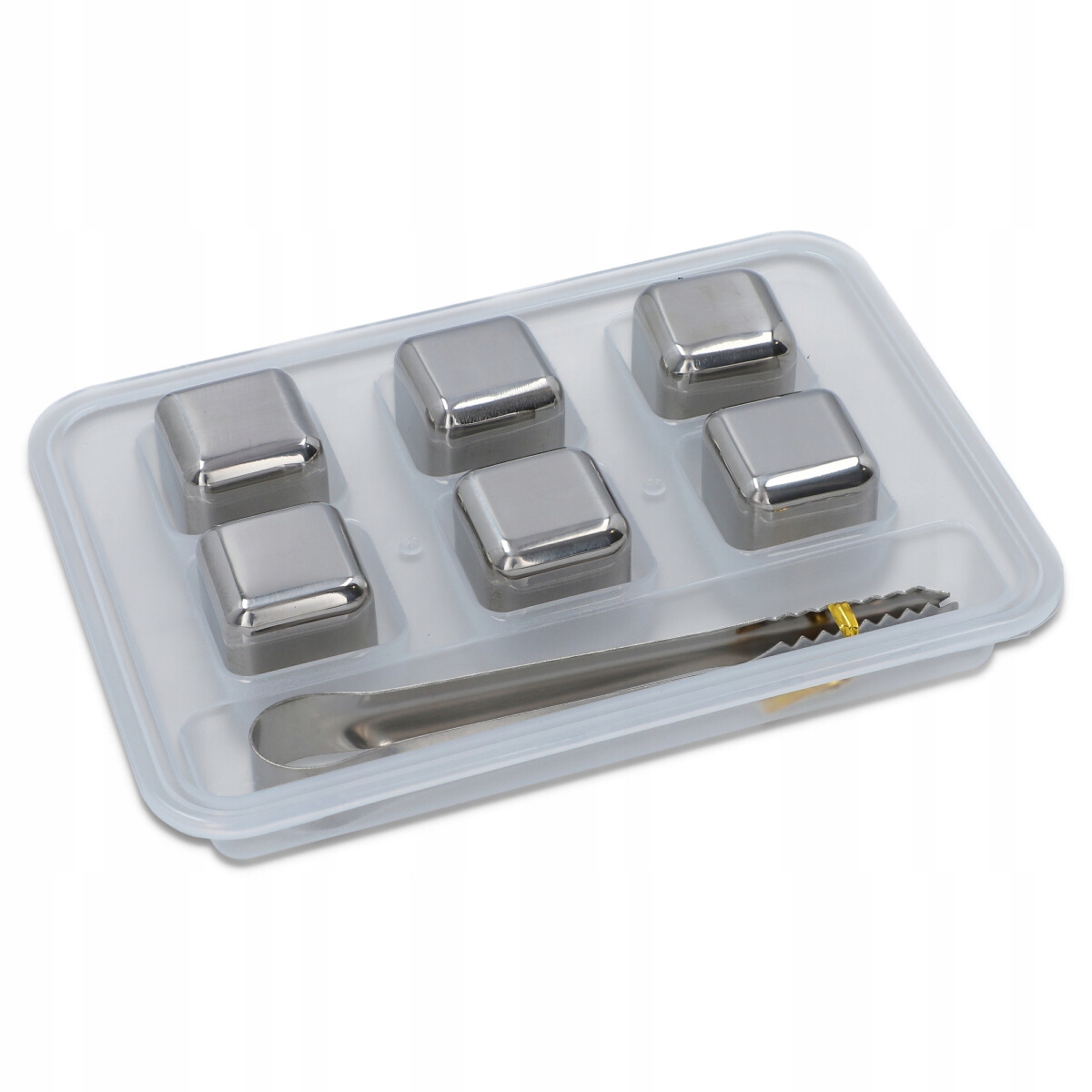 Zestaw 6 stalowych kostek do drinków ze szczypcami: