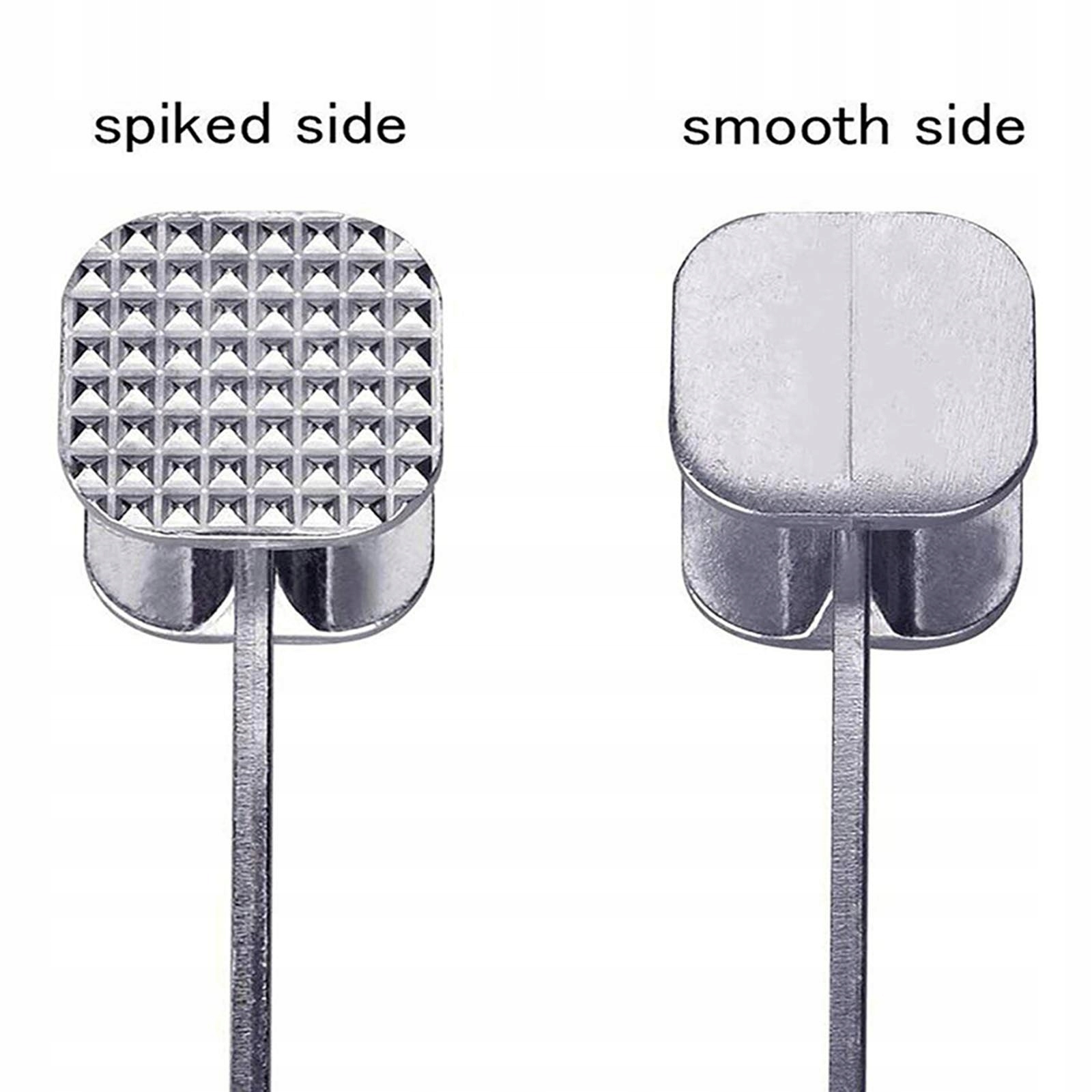 1. Projekt podwójnego zastosowania, użyj płaskiej strony do wbijania filetów cienkich, aby spłaszczyć delikatną wieprzowinę, cienkie kotlety, sznytzel. Lub użyj teksturowanej strony do zmiękczania, aby stworzyć idealne, delikatne, soczyste steki.