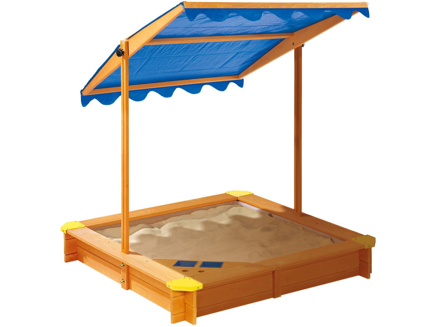 Odkryj świat fantazji z naszą piaskownicą z daszkiem! Wytrzymała, drewniana piaskownica z daszkiem chroniącym przed promieniowaniem UV chroni przed deszczem i słońcem, zapewniając wielogodzinną zabawę. Przepuszczająca wodę mata podłogowa zapewnia optymalny odpływ wody, a zaokrąglone krawędzie - maksymalne bezpieczeństwo. Idealny prezent dla małych odkrywców od 1. r.ż.!
