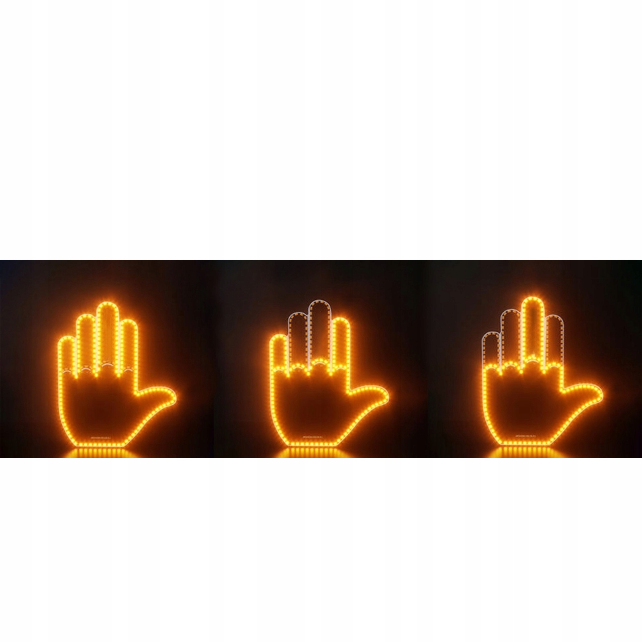 Masz dość ciągłego podirytowania za kierownicą i niemożności wyrażania swoich negatywnych emocji? A może chciałbyś podziękować innym kierowcom inaczej niż światłami awaryjnymi - bardziej oryginalnie? Jeśli odpowiedzi na te pytania są twierdzace, to nasz sygnalizator LED będzie dla Ciebie idealnym wyborem! Mała rączka otoczona wyjątkowo intensywnie świecącymi światłami LED wyrazi za Ciebie wszelkie emocje.