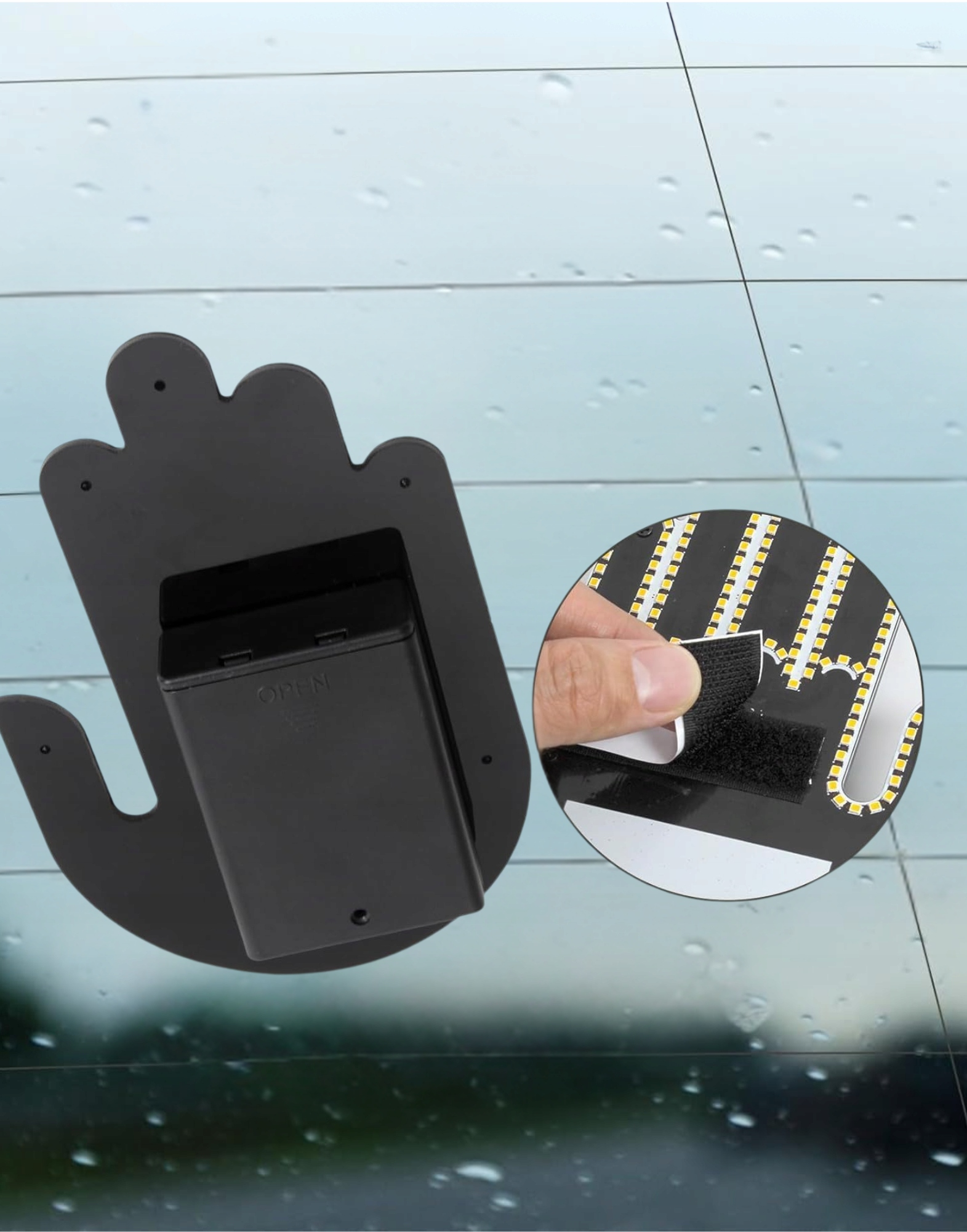 ✔️ Zamontowana za pomocą rzepów na tylnej szybie samochodu może wskazywać 3 różne gesty za pośrednictwem bezprzewodowego pilota.