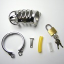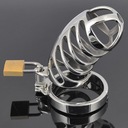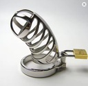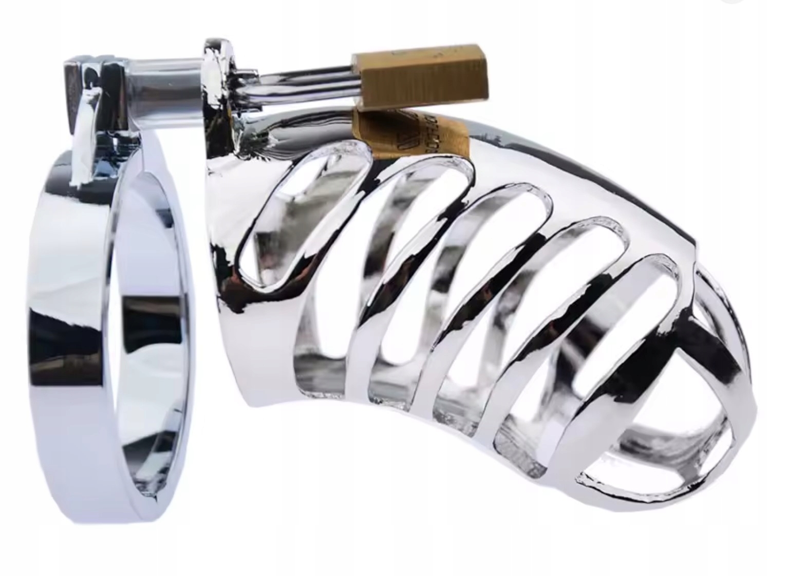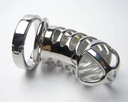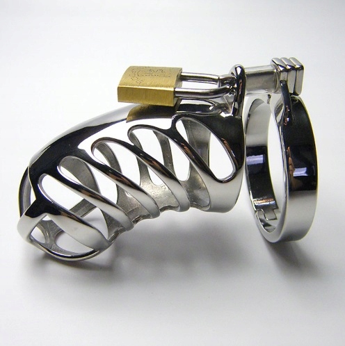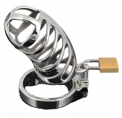 Pas cnoty wykonany jest ze stali nierdzewnej. Klatka ma specjalny otwór umożliwiający oddawanie moczu, co jest bardzo ważne przy wyborze rodzaju klatki. Pierścień za klatką otwiera się na specjalnym zawiasie. Przekłada się go za mosznę, następie zamyka i zakłada klatkę na penisa. Następnie łączymy pierścień z klatką i zakładamy kłódkę.