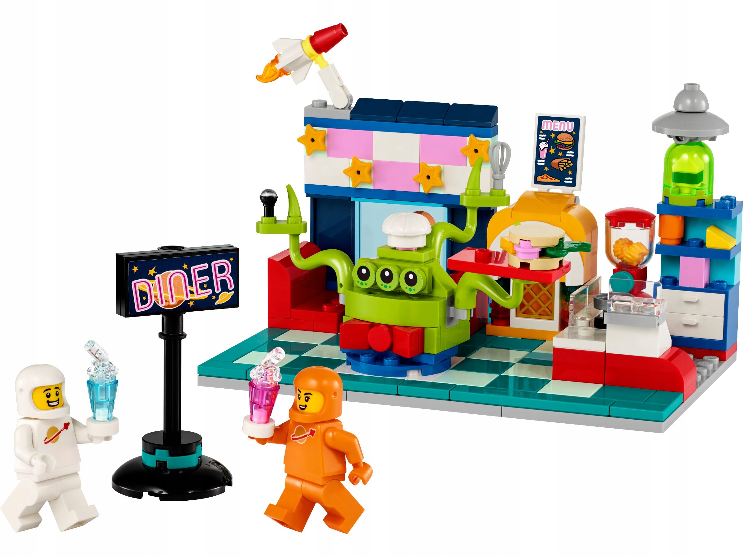 Испытайте вкус творчества в космическом ресторане LEGO® (40687) с помощью классного набора для дети от шести лет и старше, у которых есть аппетит к межзвездным приключениям. Внутри находятся Две минифигурки астронавтов и множество аксессуаров для игры. Полюбуйтесь видом на далекую планету, потягивая молочный коктейль, закажите вкусный гамбургер у космического официанта и танцуйте под музыку с музыкальный автомат. Потеху из этого мира также обеспечит кухонная зона с открывающимися ящиками и меню. Приятного аппетита!