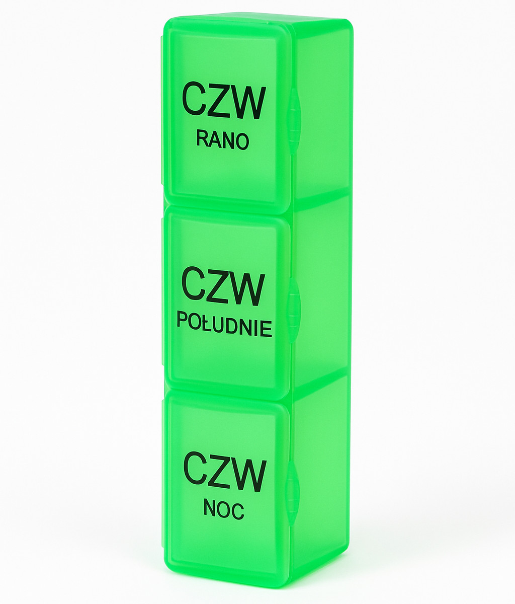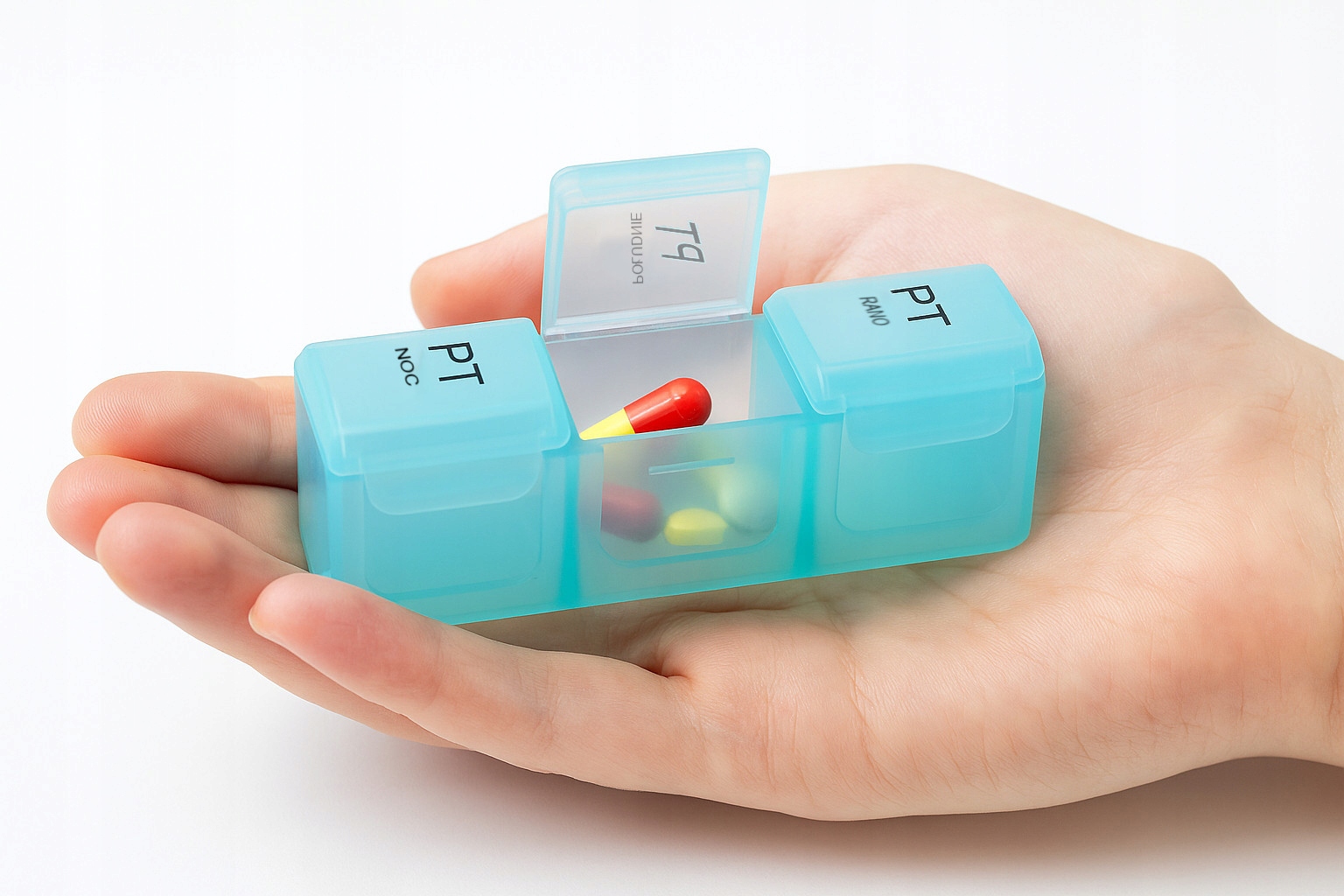 Pudełeczko na lek pomaga uniknąć pomyłek w dawkowaniu – szczególnie ważne przy przyjmowaniu wielu leków lub suplementów. Daje pewność, że żadna dawka nie została pominięta ani zdublowana.