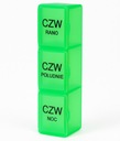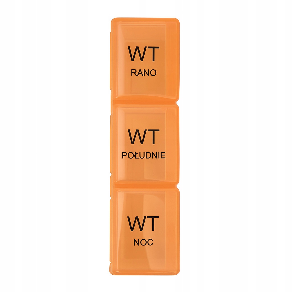 Organizer na tabletkijest podzielony na 7 pionowych rzędów (dni tygodnia: PON–NIE) i 3 poziome sekcje (RANO, POŁUDNIE, NOC). Dzięki temu z łatwością można przygotować porcje leków na cały tydzień i być pewnym, że żadna dawka nie zostanie pominięta.