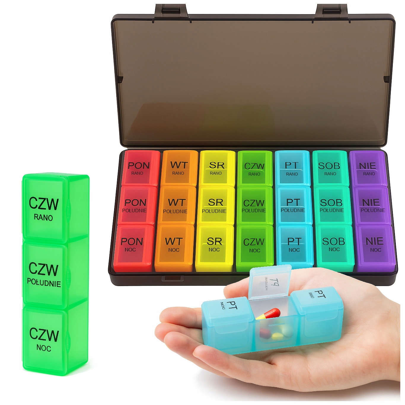 Pudełeczko na leki ułatw sobie codzienność i zadbaj o zdrowie swoje lub bliskiej osoby – z pomocą praktycznego i estetycznego organizera na leki, który pozwala w pełni kontrolować dawkowanie leków w ciągu całego tygodnia.