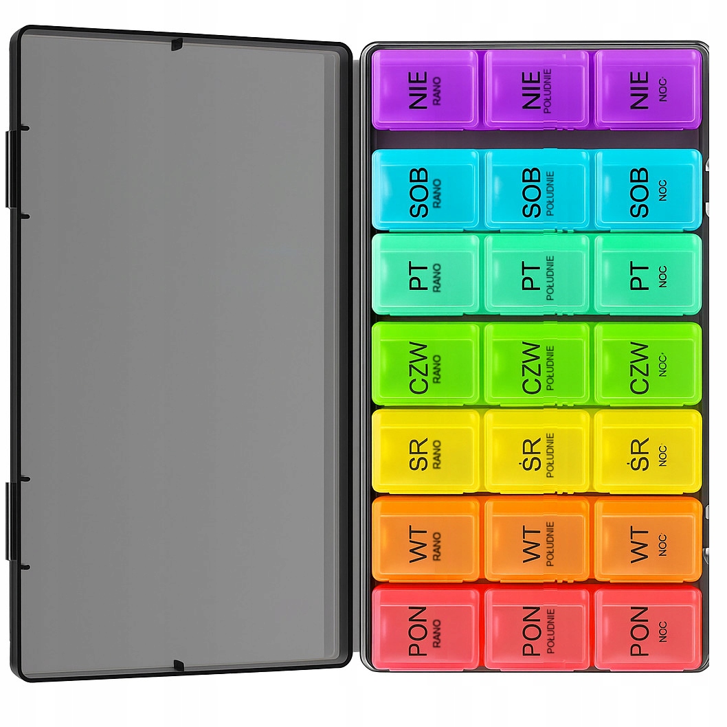 ✔️ 21 komór – 7 dni × 3 pory dnia: rano, południe noc.