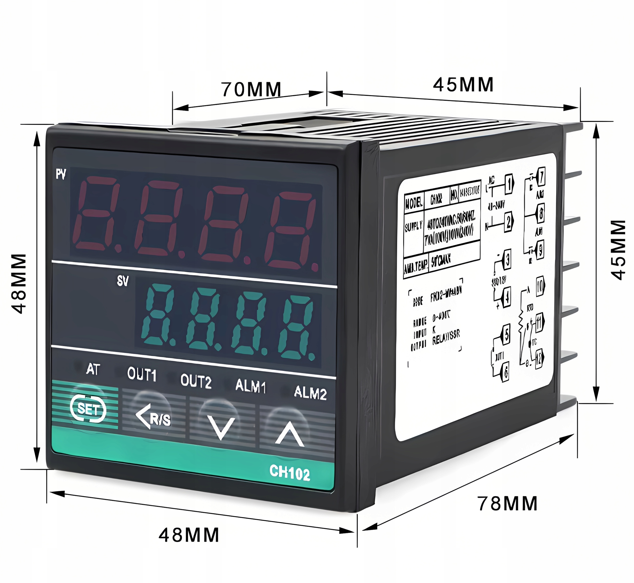 Urządzenie przeznaczone do automatycznej regulacji temperatury w różnych zastosowaniach przemysłowych i domowych. Sprawdza się m.in. w piecach do pizzy, wędzarniach, suszarniach, prasach, maszynach do zgrzewania, destylatorach, zgrzewarkach, lakierniach, liniach produkcyjnych oraz wszędzie tam, gdzie wymagana jest precyzyjna kontrola temperatury.
