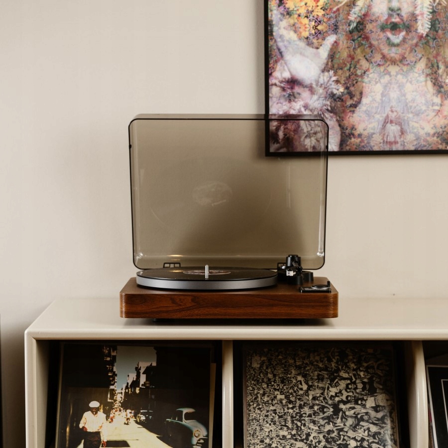 Stylowy, w pełni automatyczny gramofon w eleganckim wykończeniu wood – harmonijne połączenie klasyki i nowoczesności.