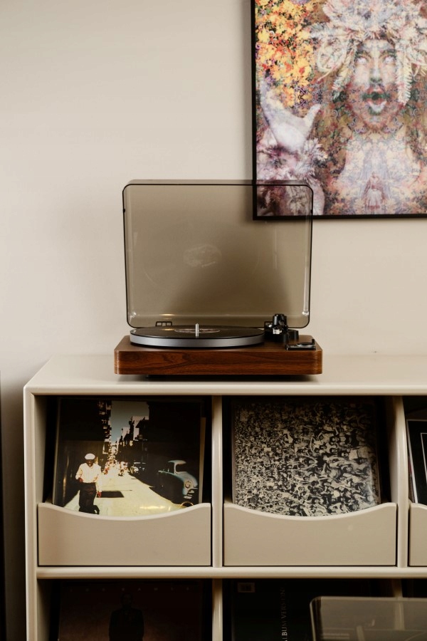 Gramofon posiada wbudowany przedwzmacniacz, co pozwala na podłączenie go bezpośrednio do niemal każdego zestawu audio – także takiego bez wejścia phono. Jeśli jednak dysponujesz własnym przedwzmacniaczem lub wzmacniaczem z sekcją phono, możesz łatwo wyłączyć ten wbudowany.