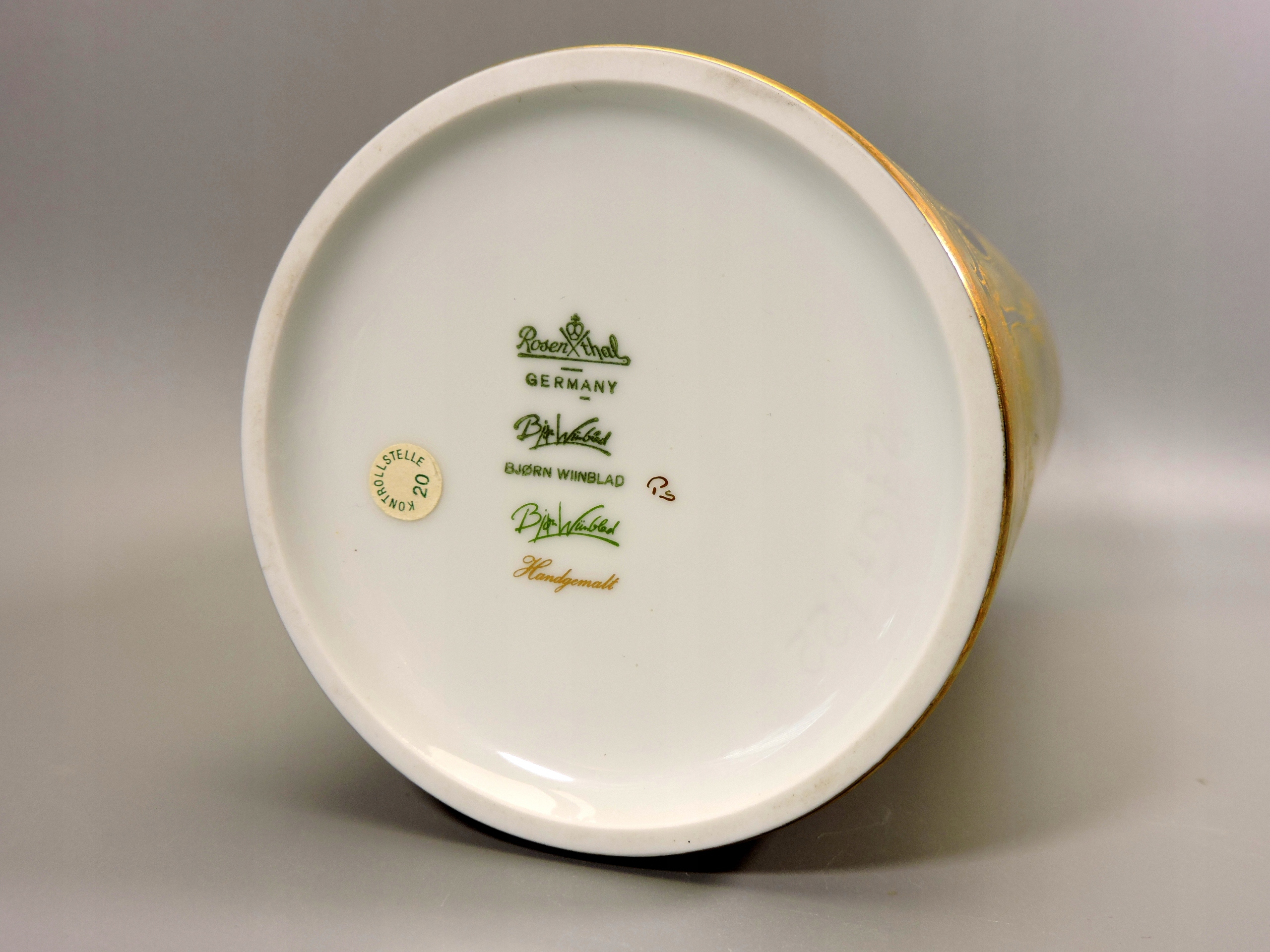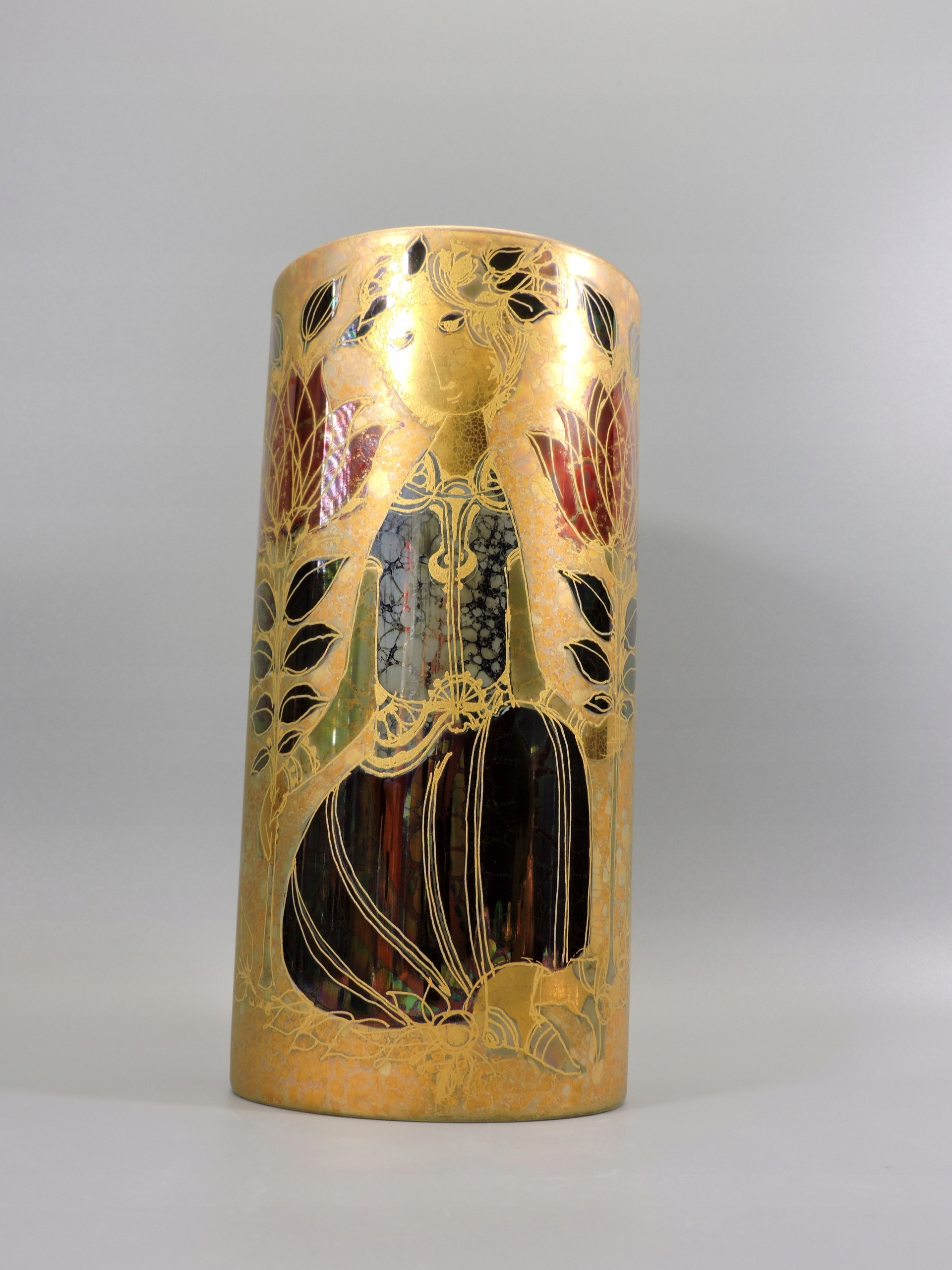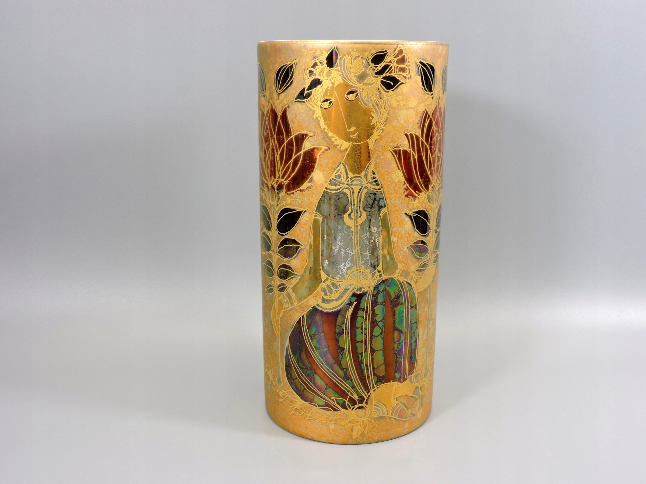 Prosta nowoczesna forma, wspaniałe ręcznie malowane zdobienie nasycone złotem, stylu Wiinblada, wraz z zmianą światła oddają inne odcienia