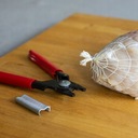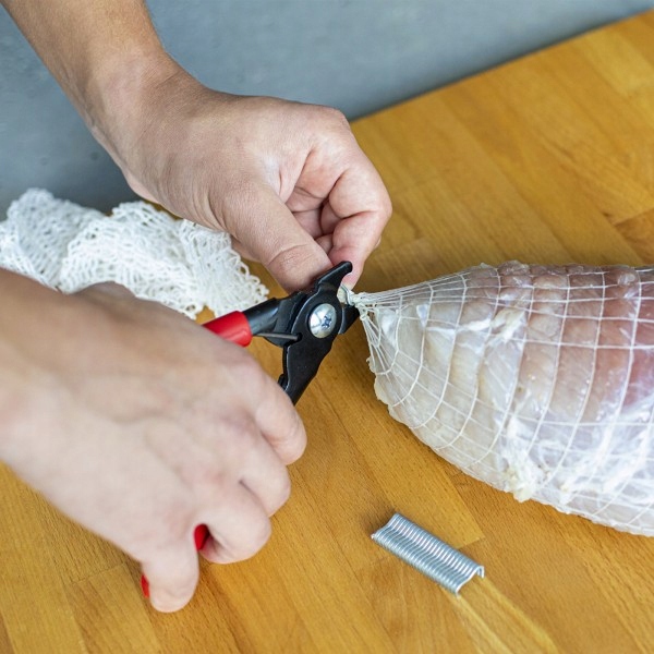 Zaciskarka wędliniarska służy do zaciskania specjalistycznych klipsów na jelitach, osłonkach oraz siatkach wędliniarskich. Zestaw zawiera 60 klipsów wyprofilowanych w taki sposób, aby perfekcyjnie pasowały do zaciskarki oraz w łatwy sposób „zawijały” się do środka.