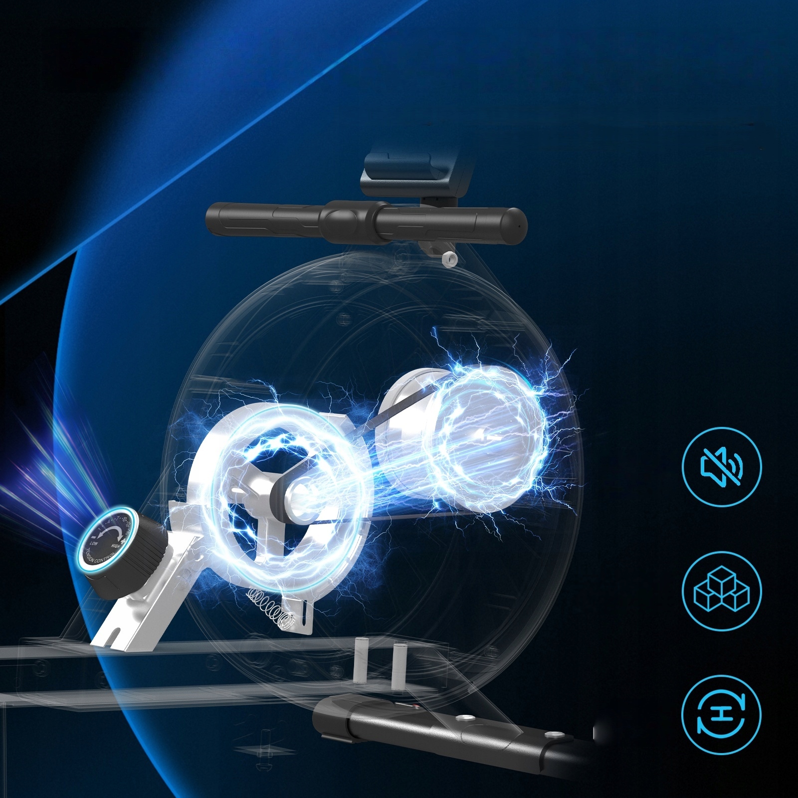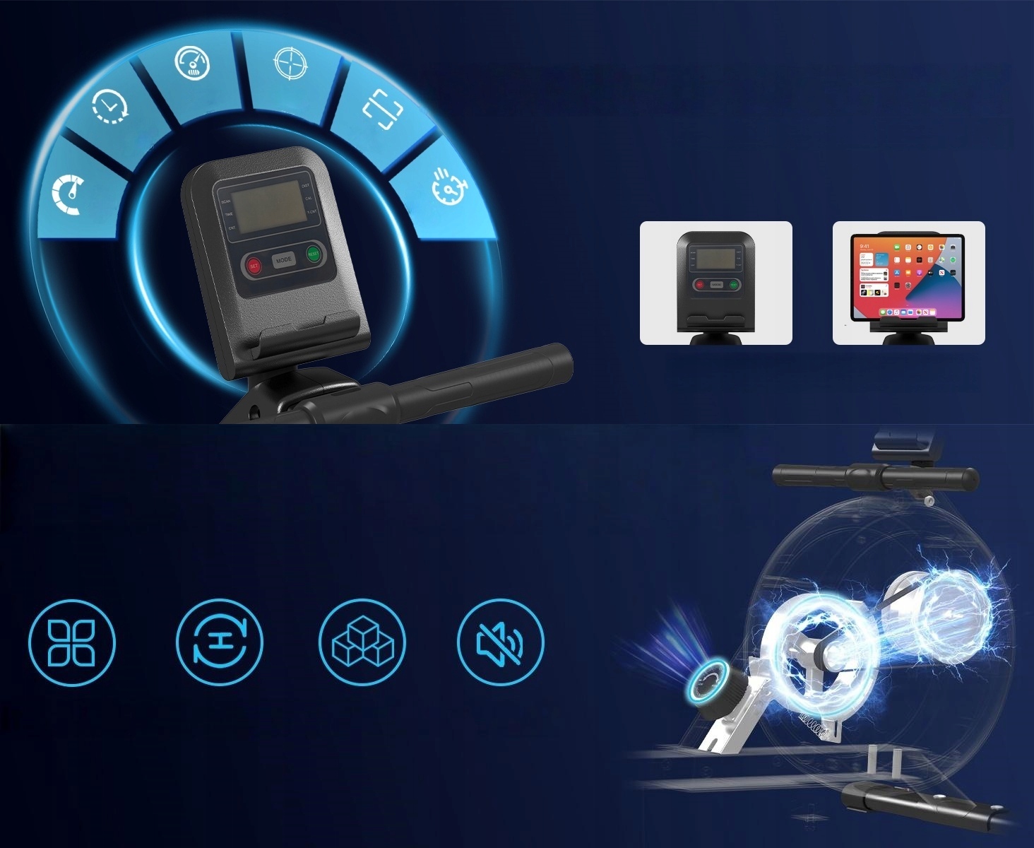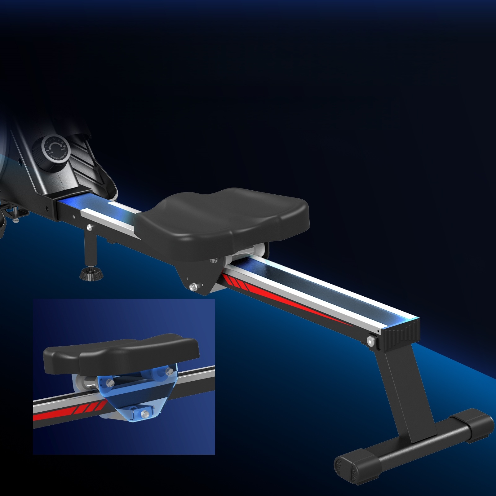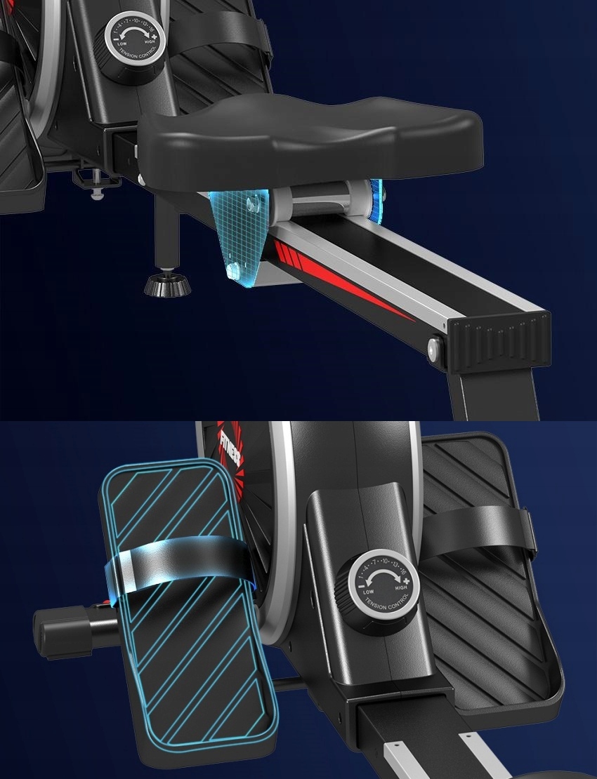 ⚙ ⚙ zmodernizowany system oporu magnetycznego + metalowa szyna + rolka poduszki potrójna technologia redukcji hałasu, aby osiągnąć prawie bezgłośne i płynne wiosłowanie.