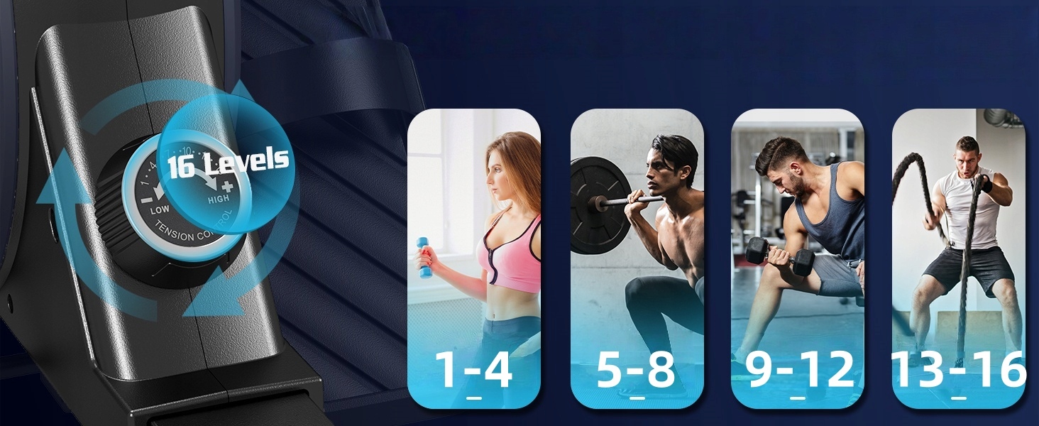 🔥🔥zapewnia 1-16 poziomów regulacji oporu magnetycznego, aby zaspokoić różne potrzeby fitness całej rodziny: 1-4 poziomów jest odpowiednich dla początkujących do rozgrzewki, 5-8 poziomów pomaga treningowi aerobowemu, 9-12 poziomów jest wysoce skutecznych w spalaniu tłuszczu, a 13-16 poziomów stanowi wyzwanie dla zaawansowanej sprawności.