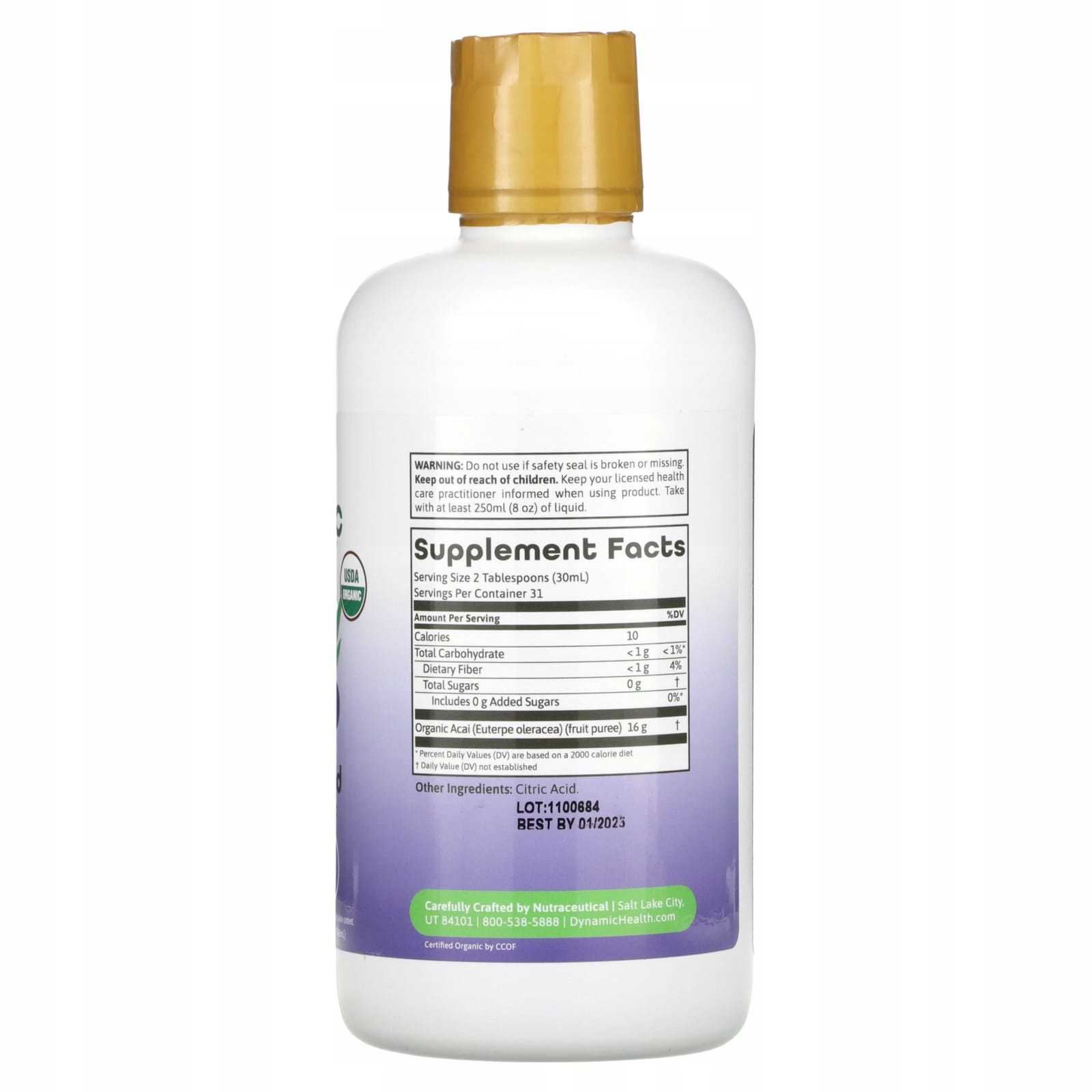 Nazwa Produktu:Dynamic Health, Certyfikowane organiczne Acai Gold, 946 ml