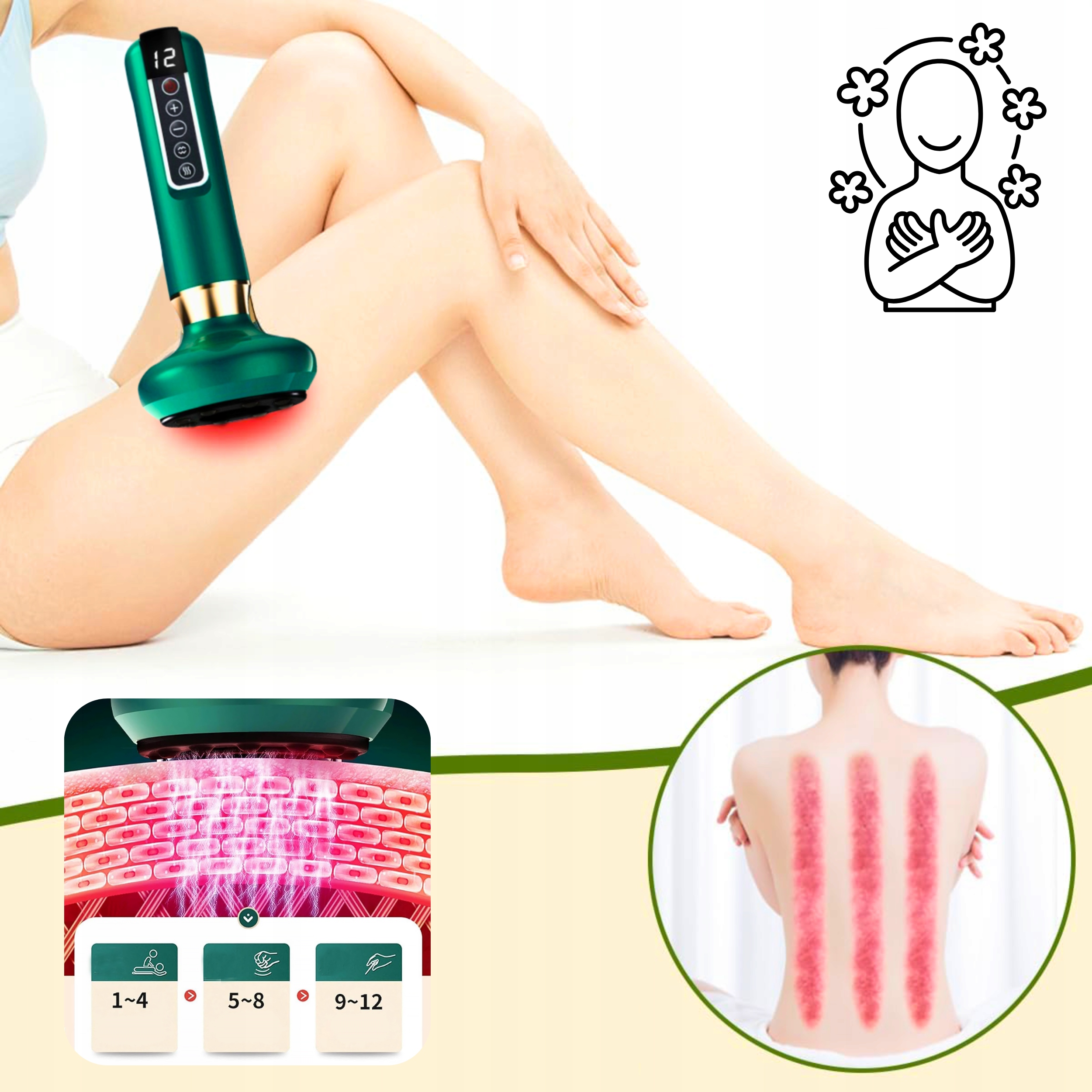 ✔ Funkcje masażu: Terapia próżniowa, gua sha, podczerwień