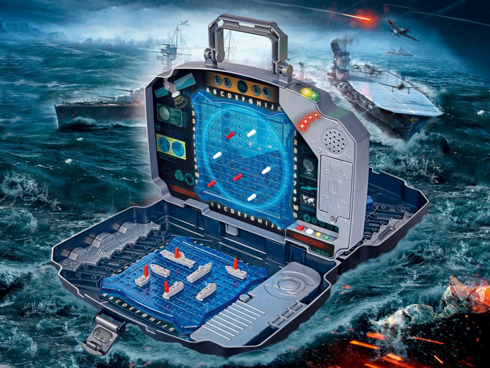Elektroniczna gra w okręty z efektami świetlnymi i dźwiękowymi 6104435 to gra strategiczna. Celem gry jest zatopienie wszystkich statków rywala. Każdy gracz po zbudowaniu ścianki działowej umieszcza swoje statki (niewidoczne dla drugiego gracza) w dowolnym polu swojego planu gry. Statki nie mogą się bezpośrednio stykać. Ten gracz, który ma ruch w danym momencie, podaje współrzędne rywalowi np. "C3". Rywal sprawdza, czy któryś z jego statków został trafiony i naciska czerwony guzik oznaczający trafienie lub biały guzik oznaczający wodę, słychać odpowiednio odgłos eksplozji lub wody. Lampki zapalają się kolejno. Gdy pocisk ląduje w wodzie, lampki gasną. W przypadku trafienia lampki migają na zmianę. Gracz, który oddał strzał, zaznacza odpowiednio pole np."C3", na swoim planie umieszczonym na ściance działowej za pomocą czerwonej wtyczki w przypadku "trafienia" lub białej w przypadku "wody". Rywal zaznacza otrzymane trafienie na swoim statku czerwoną wtyczką. Dopóki gracz trafia, może dalej strzelać.