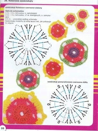 ✔️ Szczegółowe opisy podstawowych wzorów szydełkowych – np. kółka, kwiatki, kwadraty